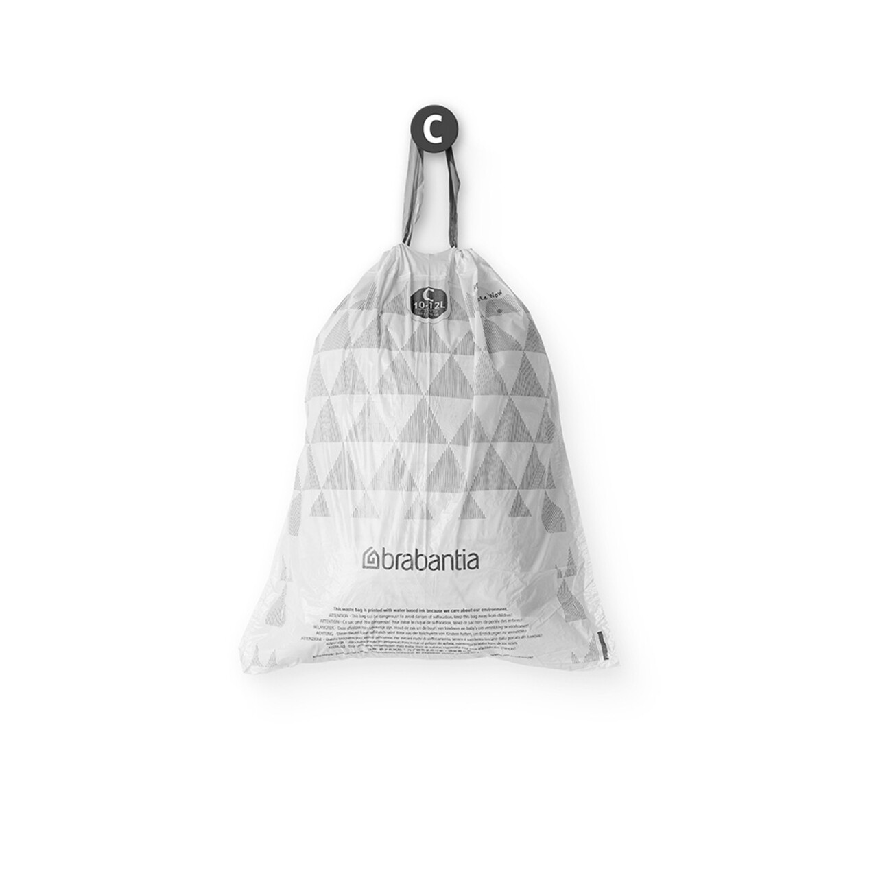 Set 40 saci de gunoi, Brabantia, PerfectFit, marimea C, 10-12 L, nailon, alb