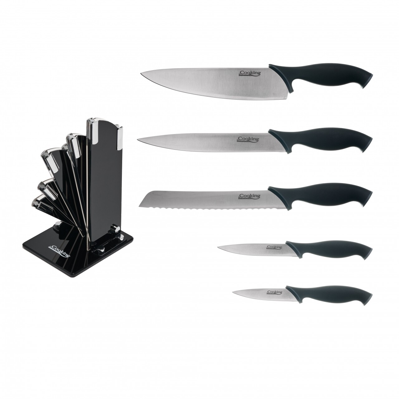 Acest set de cutite nu trebuie sa lipseaca din bucatarie dumneavoastra. Cutitele sunt fabricate din inox si au o grosime de 2-2.5 mm. Suportul este realizat din material plastic ce va ajuta la o depozitare usoara si in siguranta a acestora.