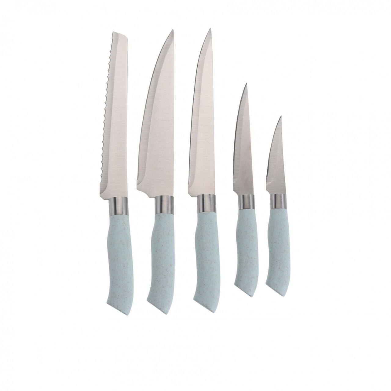 1 cutit chef cu lama de aproximativ 20 cm, 1 cutit pentru paine cu lama de aproximativ 20 cm, 1 cutit cu lama de aproximativ 20 cm, 1 cutit pentru decojit cu lama de aproximativ 13 cm, 1 cutit pentru decojit cu lama de aproximativ 9 cm,