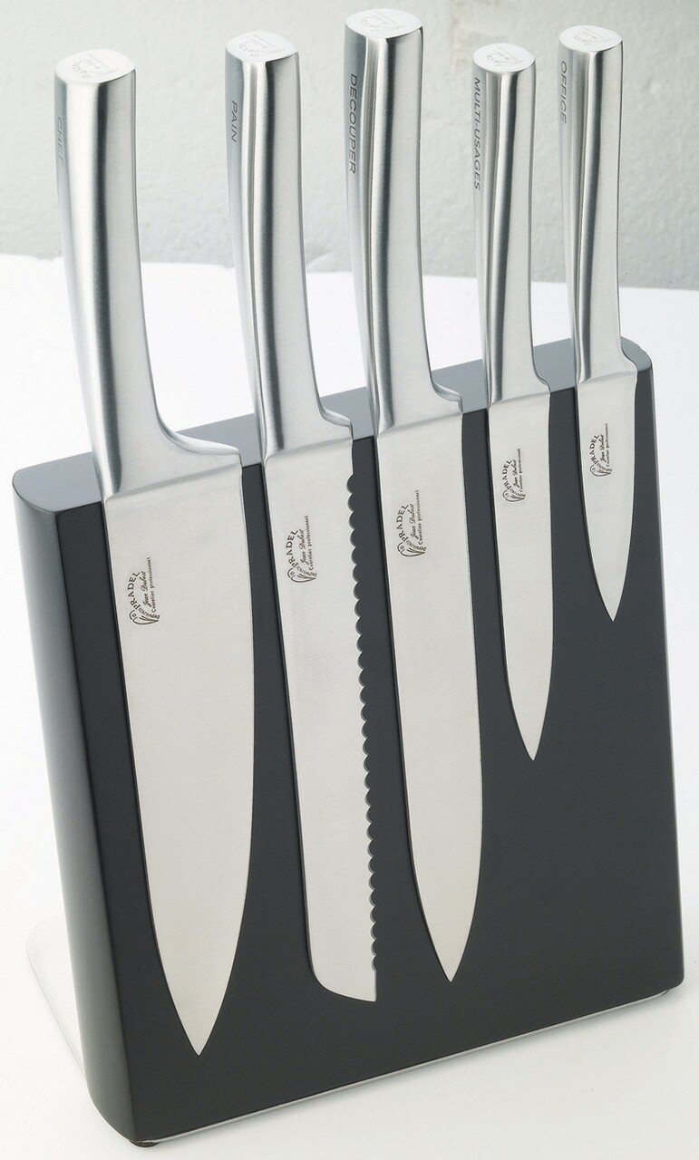 Set 5 cutite + suport Jean Dubost, inox, negru