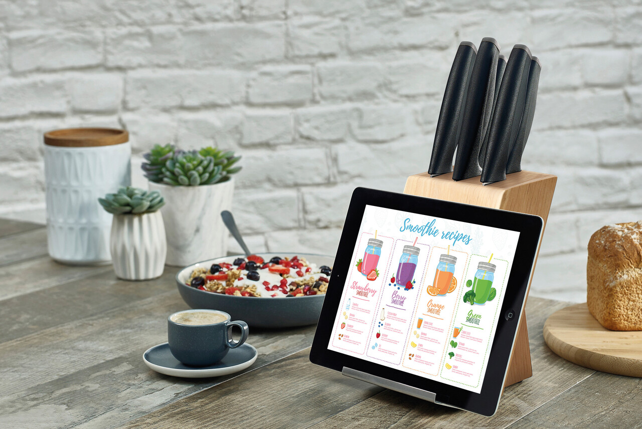 Bloc pentru cutite cu suport pentru carte de bucate sau tableta.