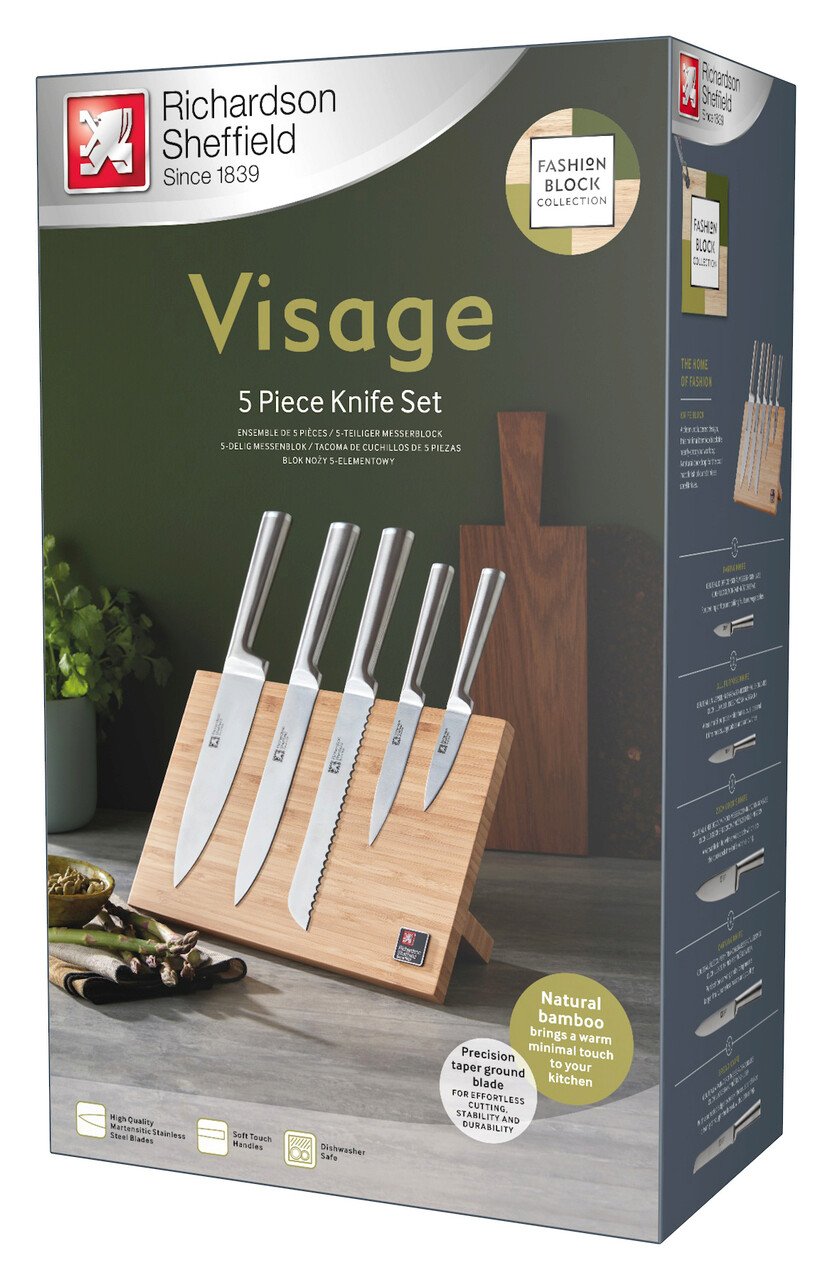 Set 5 cutite + suport magnetic, Richardson Sheffield, Visage, inox