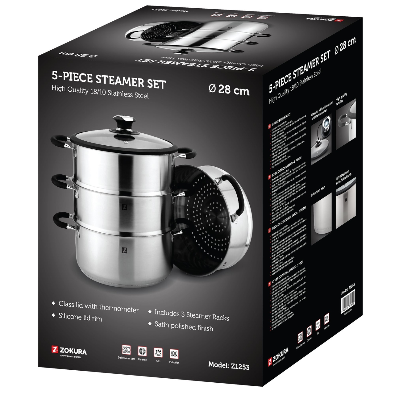 Set 5 piese pentru gatit la aburi, inox, 28cm/7,6L - Zokura