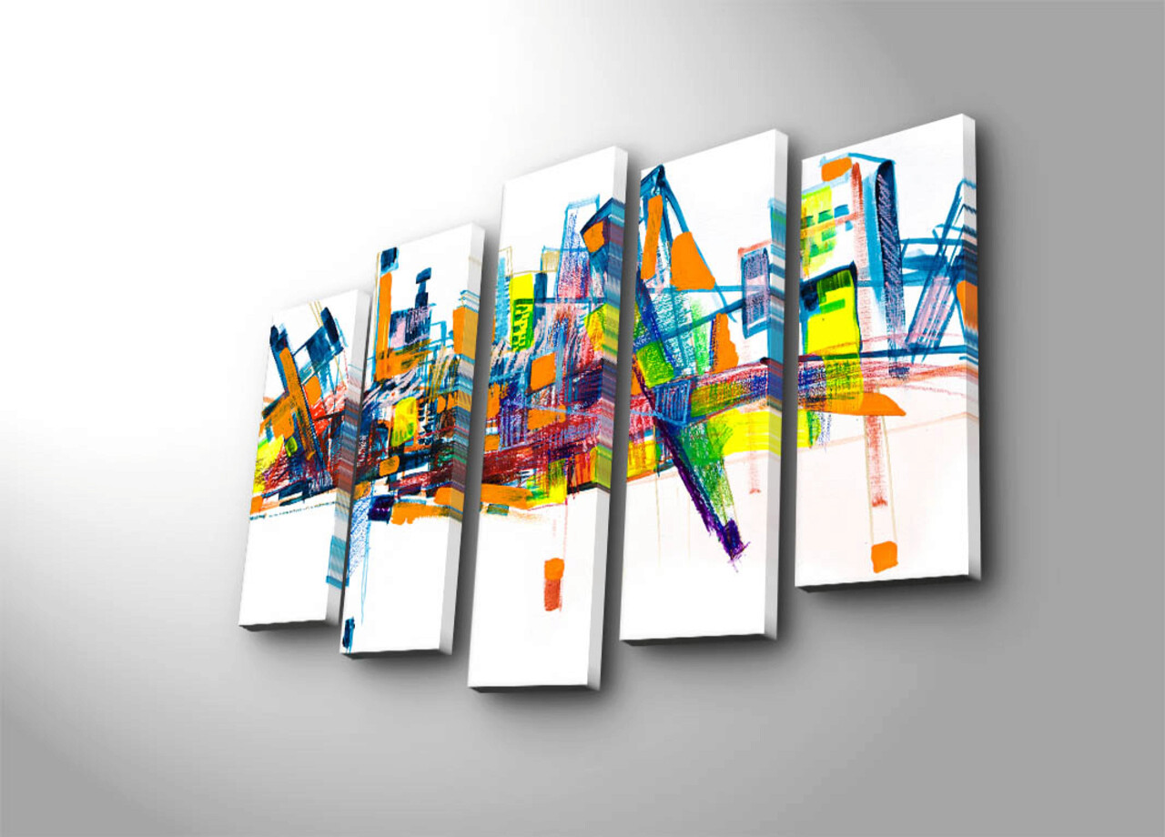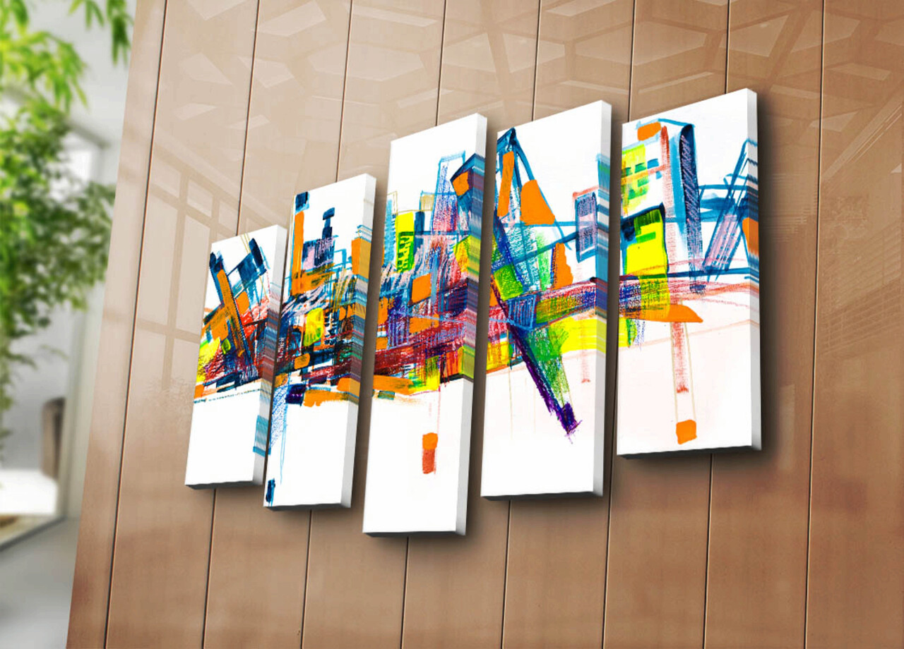 Set 5 tablouri decorative, 5PATK-202, Canvas, 19 x 70 cm, Multicolor
