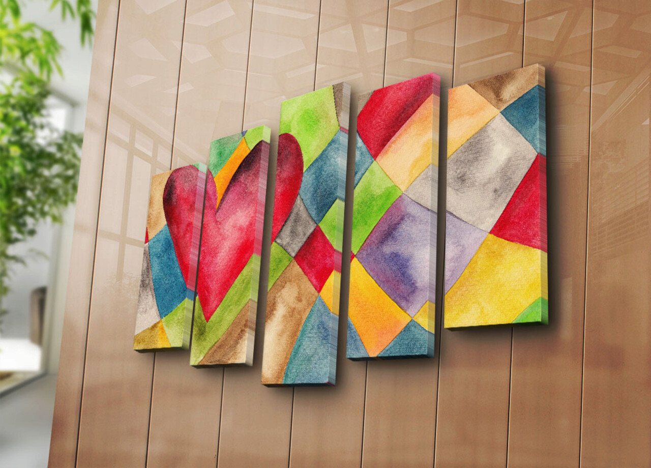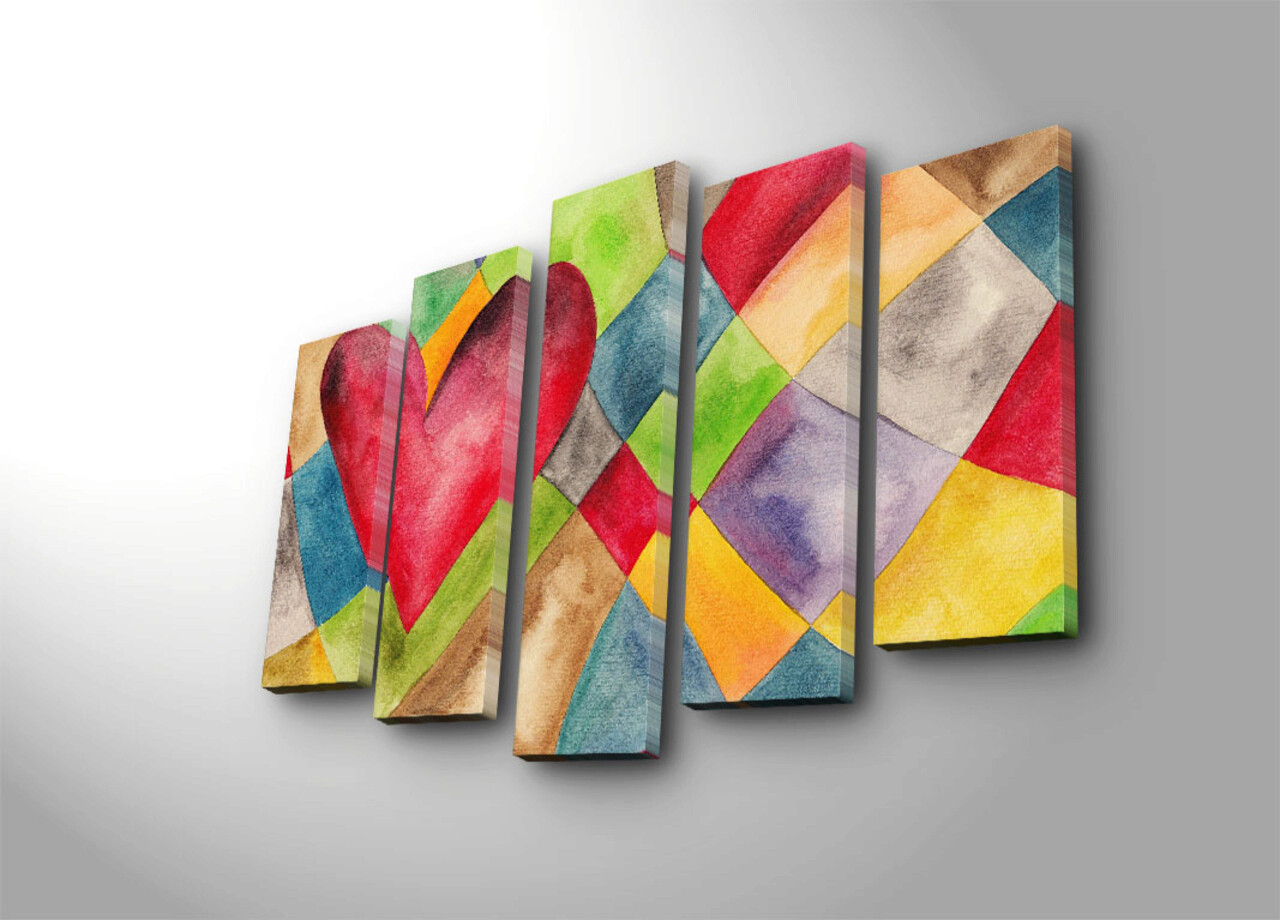 Set 5 tablouri decorative, 5PATK-207, Canvas, 19 x 70 cm, Multicolor