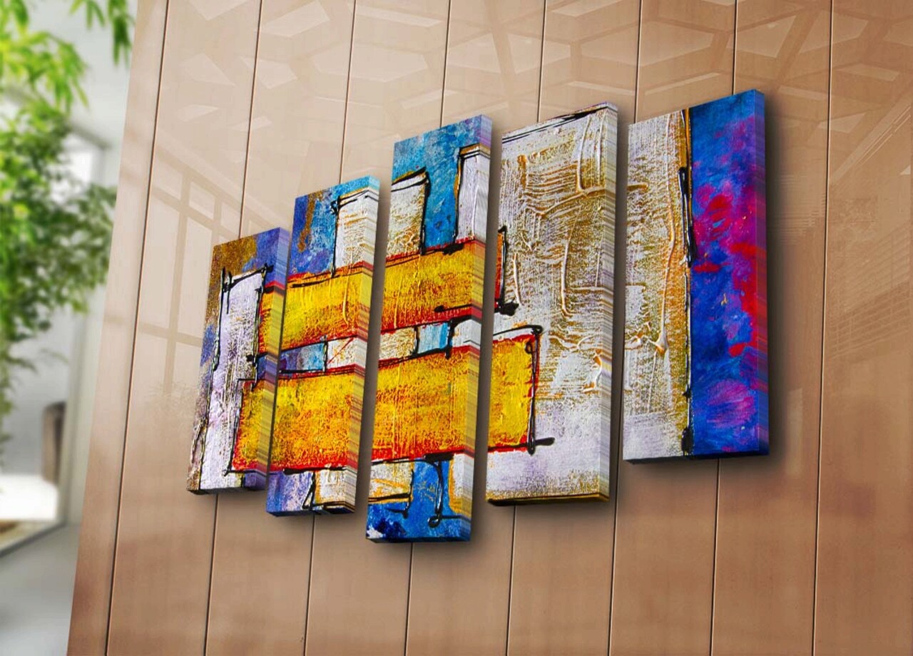 Set 5 tablouri decorative, 5PATK-217, Canvas, 19 x 70 cm, Multicolor
