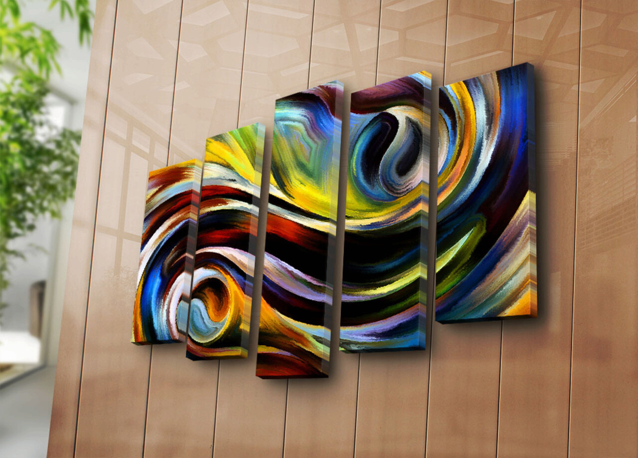 Set 5 tablouri decorative, 5PATK-229, Canvas, 19 x 70 cm, Multicolor