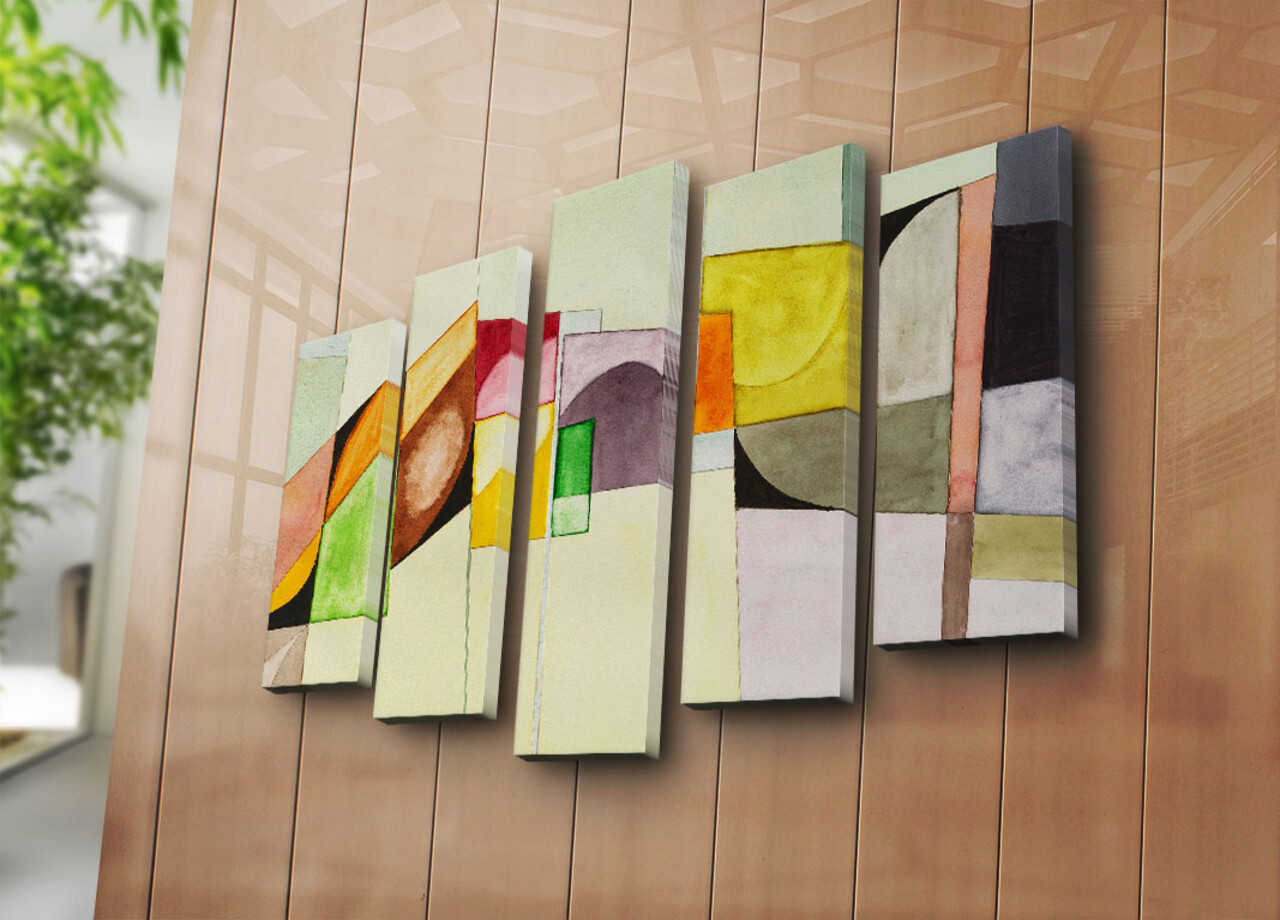 Set 5 tablouri decorative, 5PATK-233, Canvas, 19 x 70 cm, Multicolor