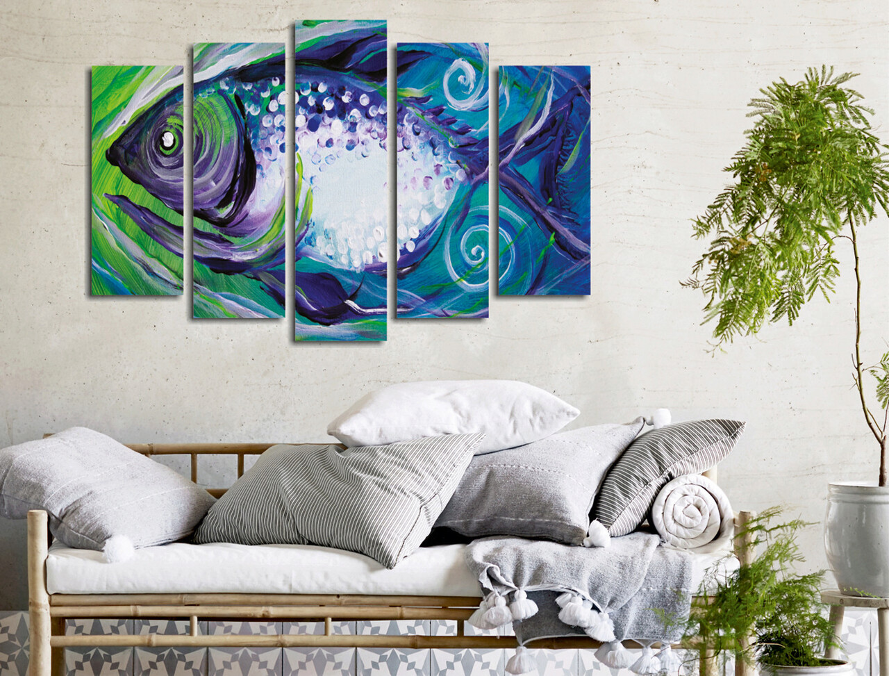 Set 5 tablouri decorative, BC050, Canvas, 70 x 20 cm, Multicolor