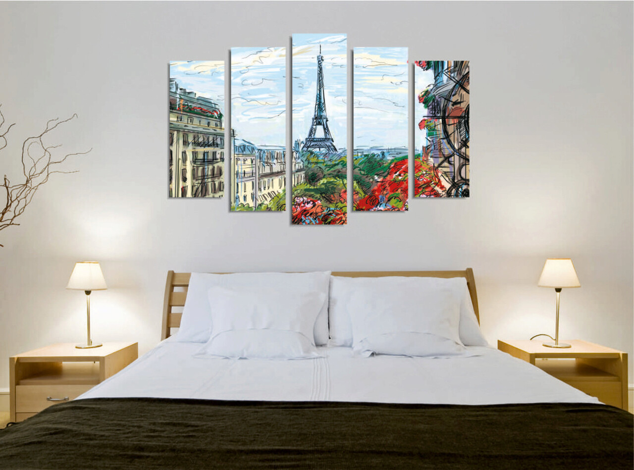 Set 5 tablouri decorative, BC102, Canvas, Lemn, Multicolor