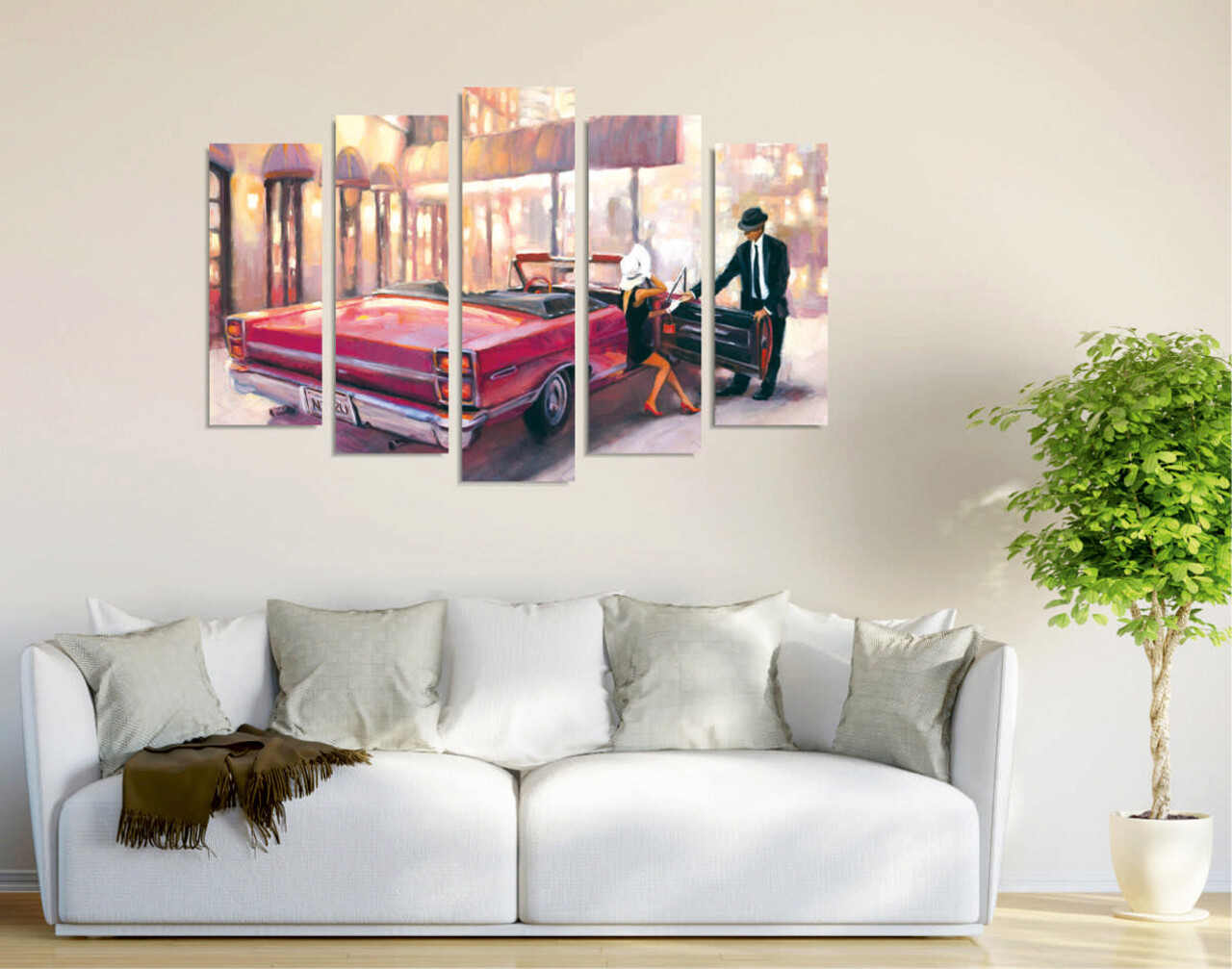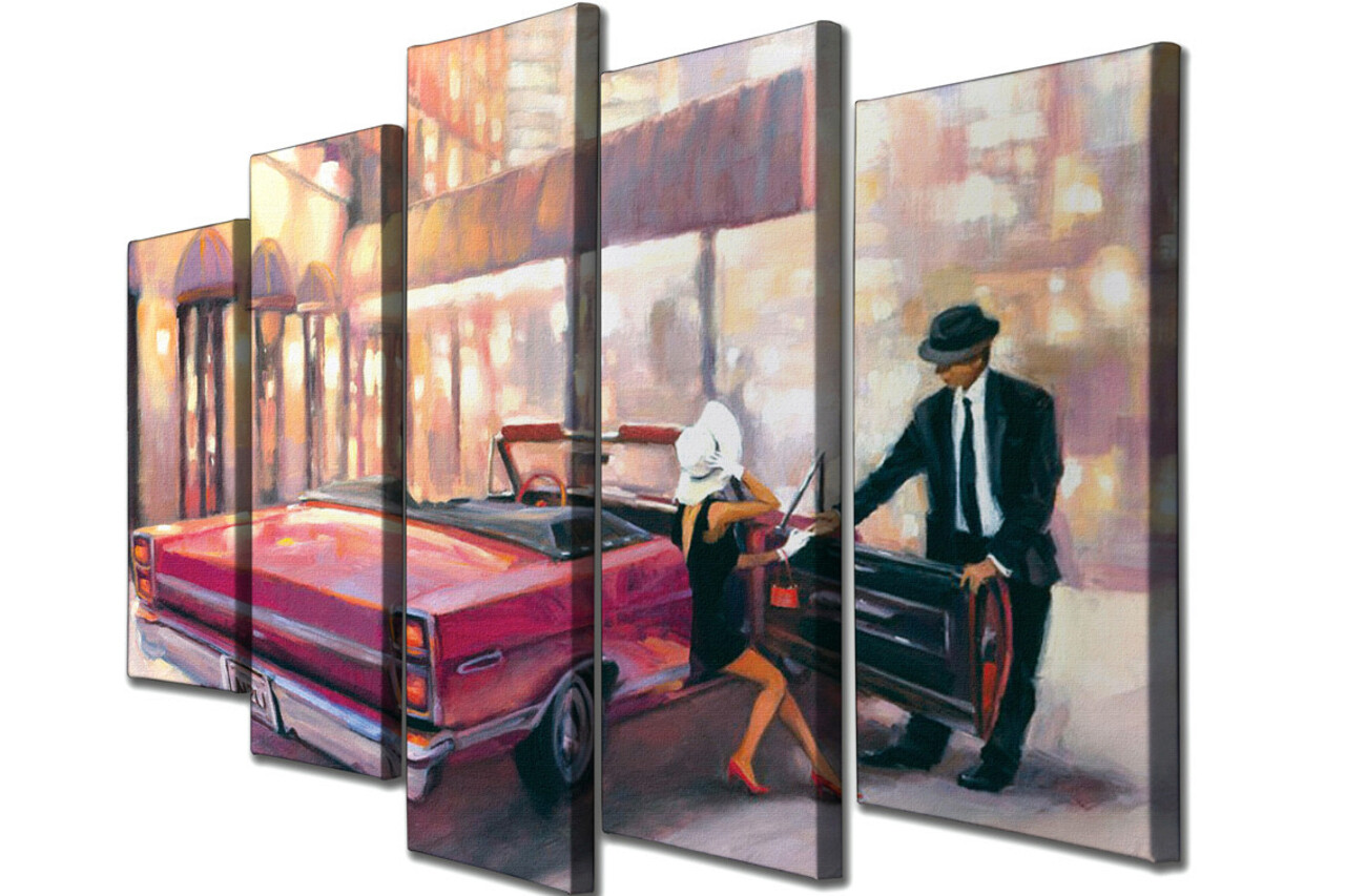 Set 5 tablouri decorative, BC110, Canvas, Lemn, Multicolor