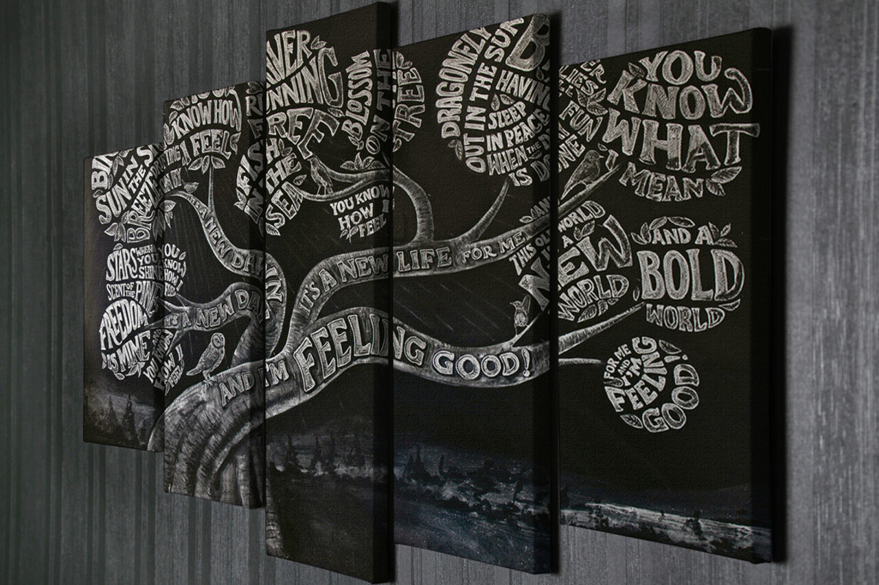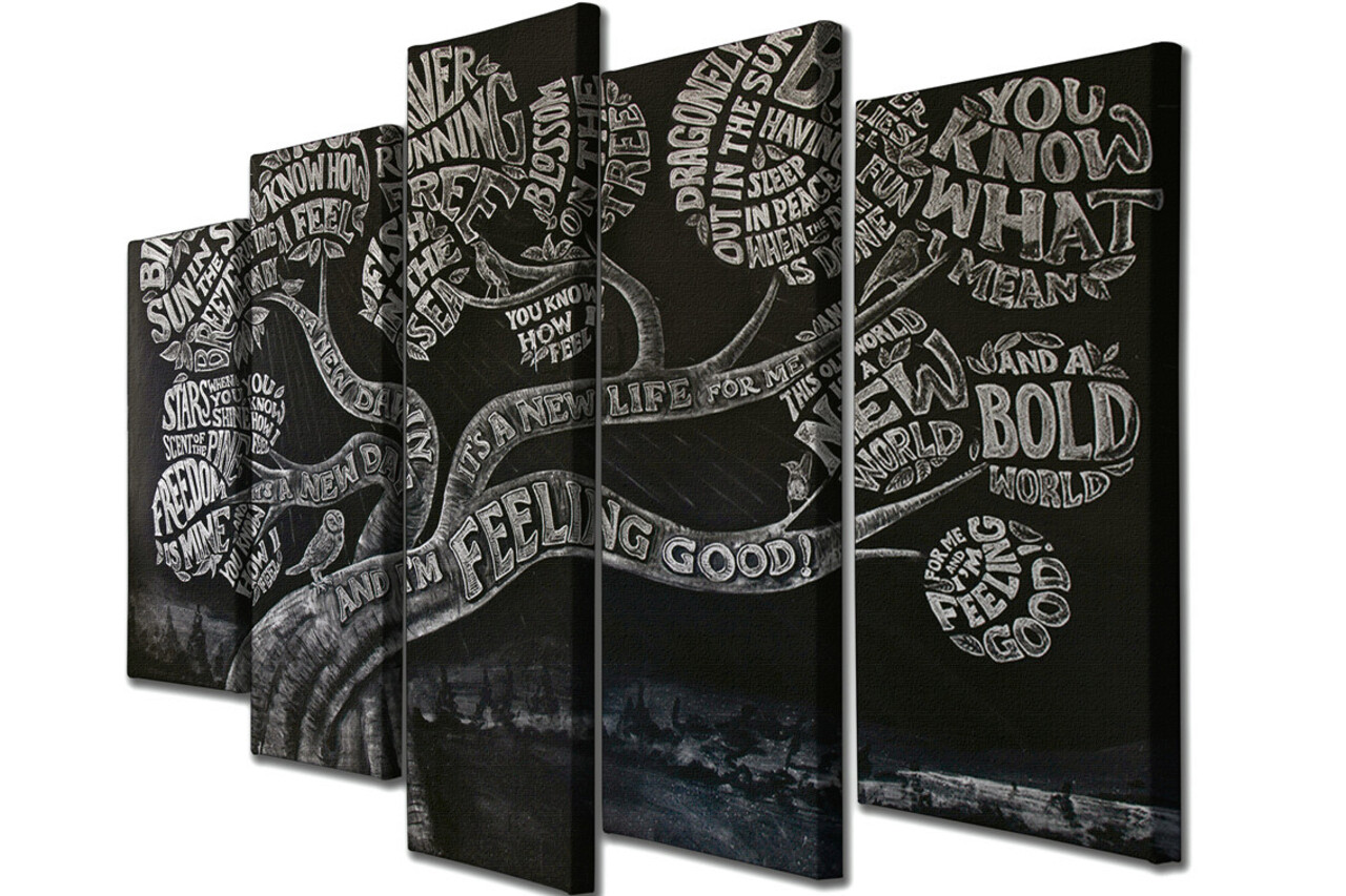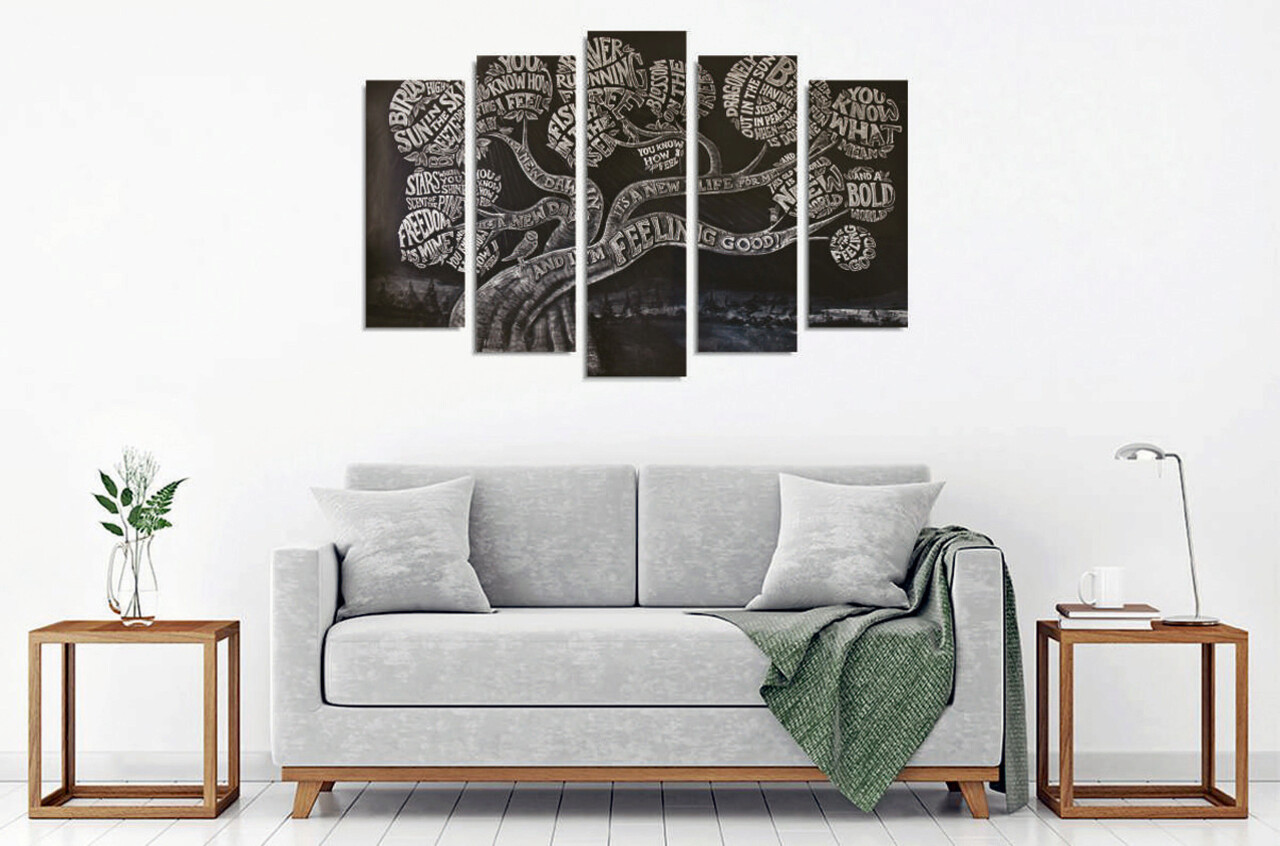 Set 5 tablouri decorative, BC111, Canvas, Lemn, Multicolor