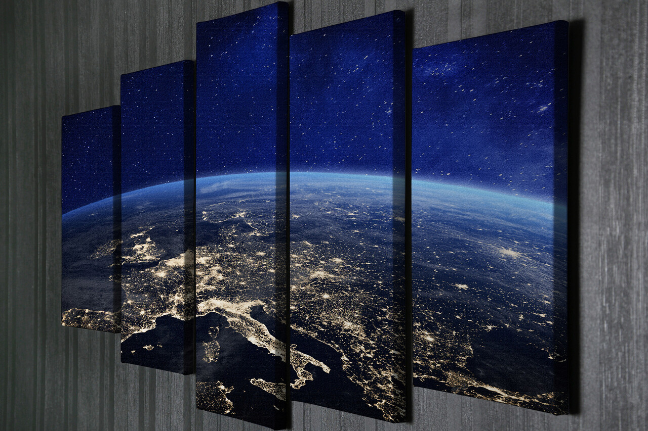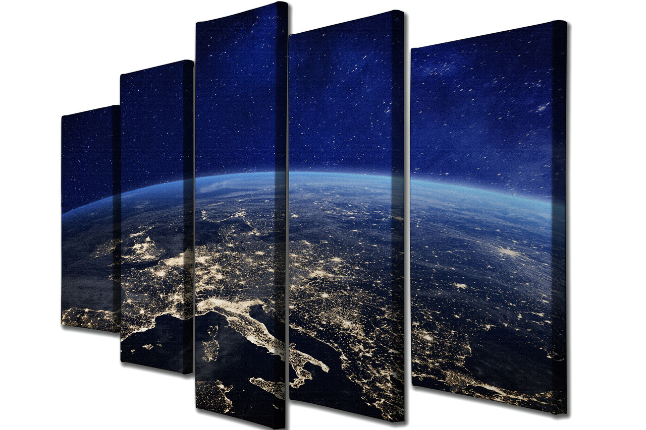 Set 5 tablouri decorative, BC119, 60% bumbac/40% poliester, Rama de lemn, Multicolor