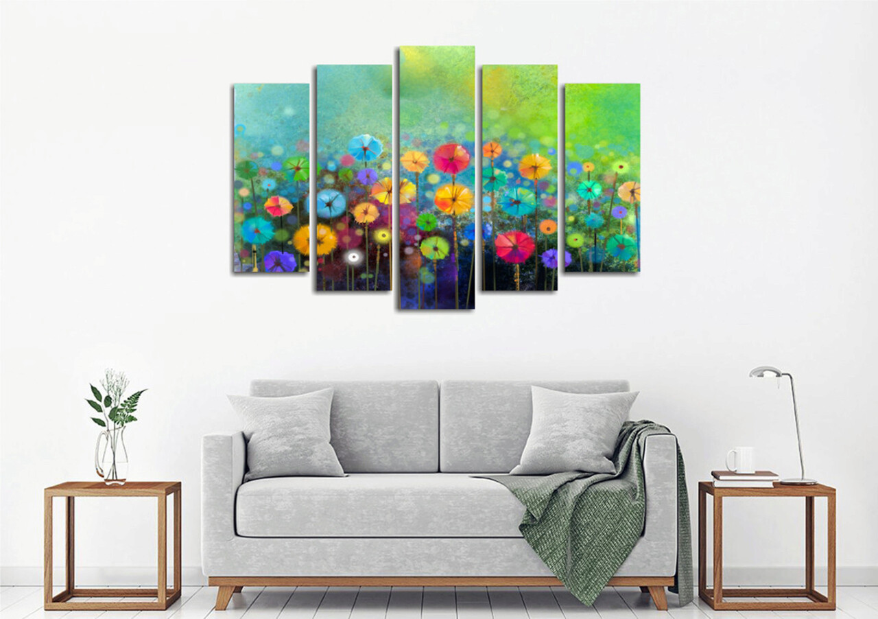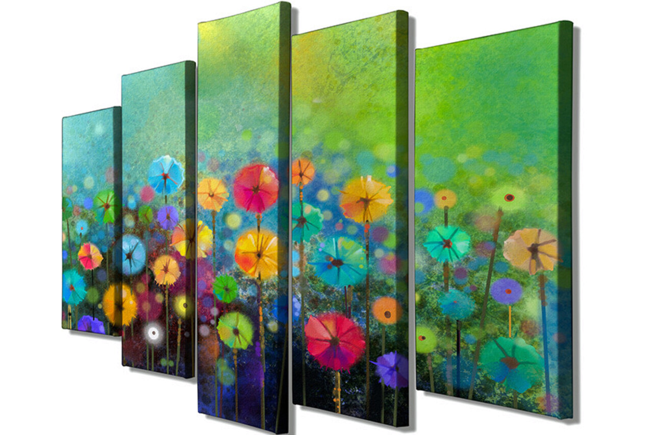 Set 5 tablouri decorative, BC55, Canvas, 70 x 20 cm, Multicolor
