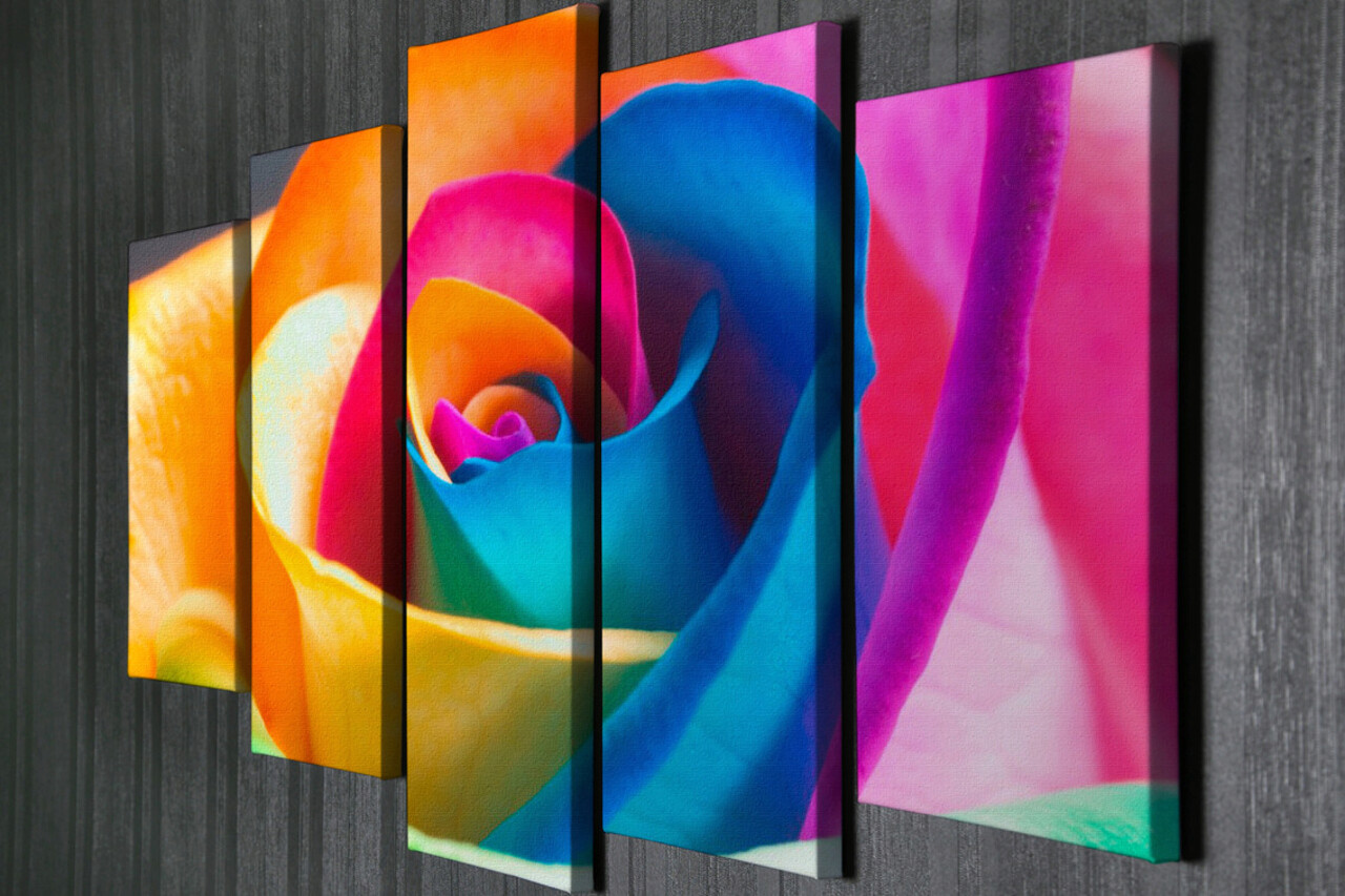 Set 5 tablouri decorative, BC85, Canvas, Lemn, Multicolor