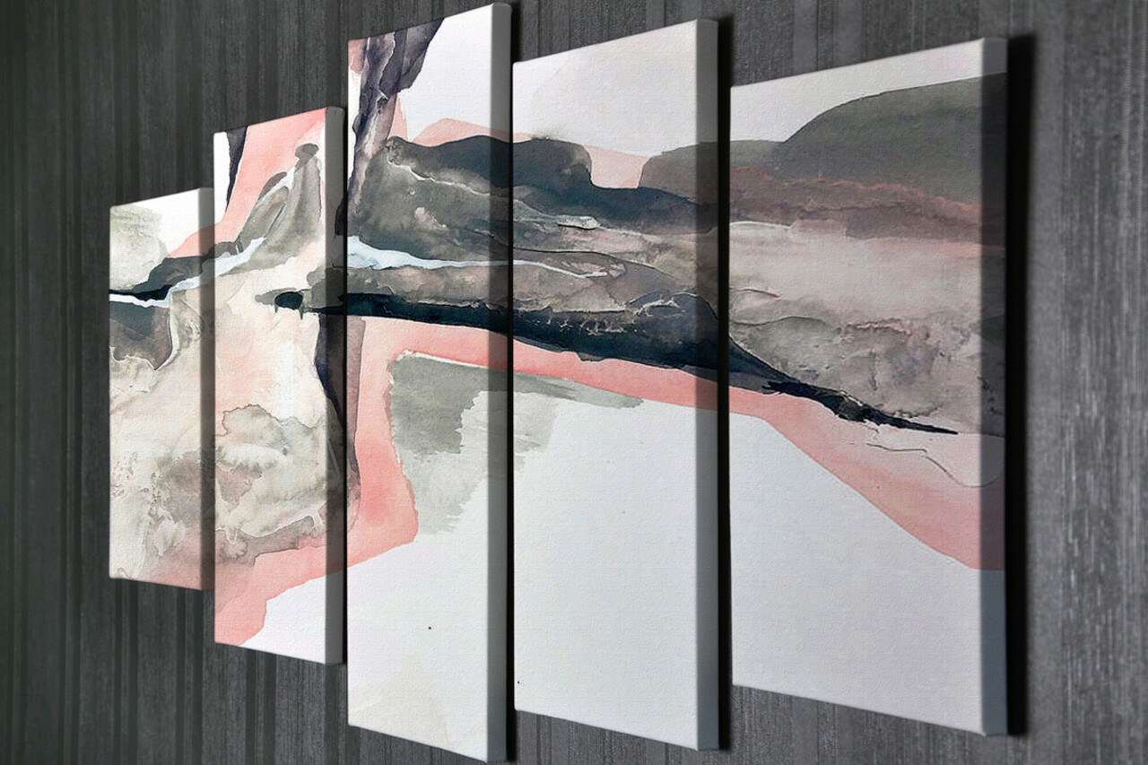 Set 5 tablouri decorative, BC90, Canvas, Lemn, Multicolor