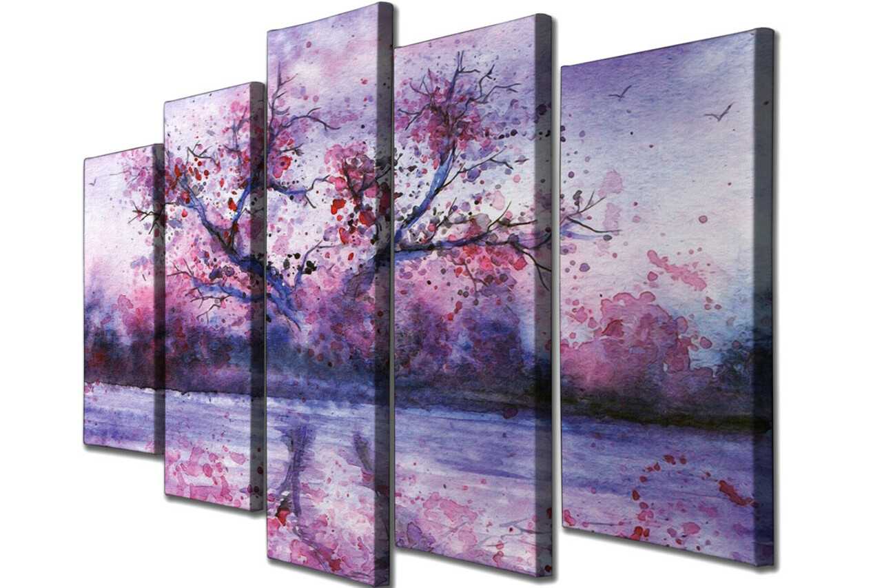 Set 5 tablouri decorative, BC99, Canvas, Lemn, Multicolor
