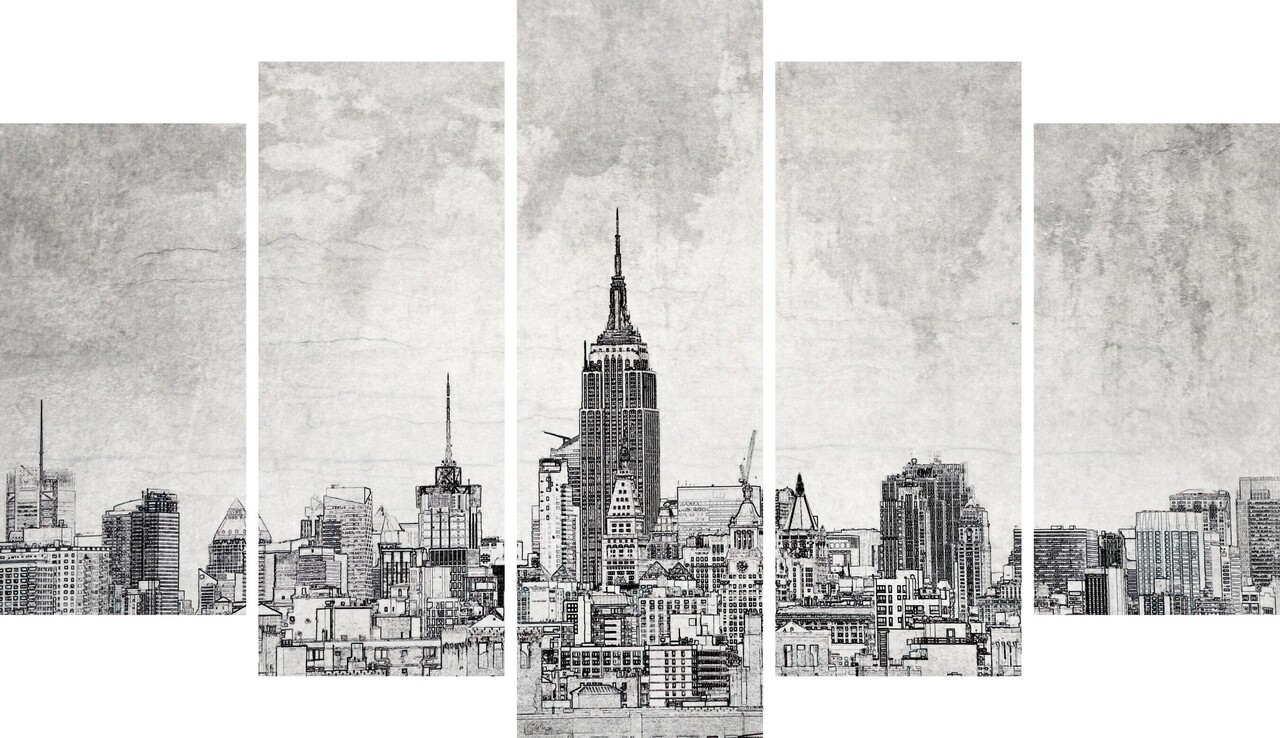 Set 5 tablouri decorative NY 2, Homemania, lemn de pin/poliester
