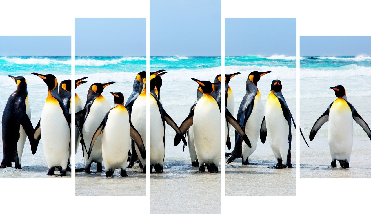 Set 5 tablouri decorative Penguins, Homemania, lemn de pin/poliester