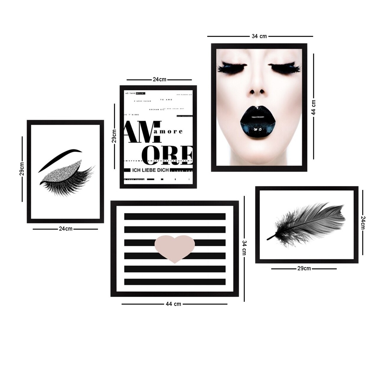Set 5 tablouri decorative, SET_027, Lulu, 24x29 cm/34x44 cm, plastic