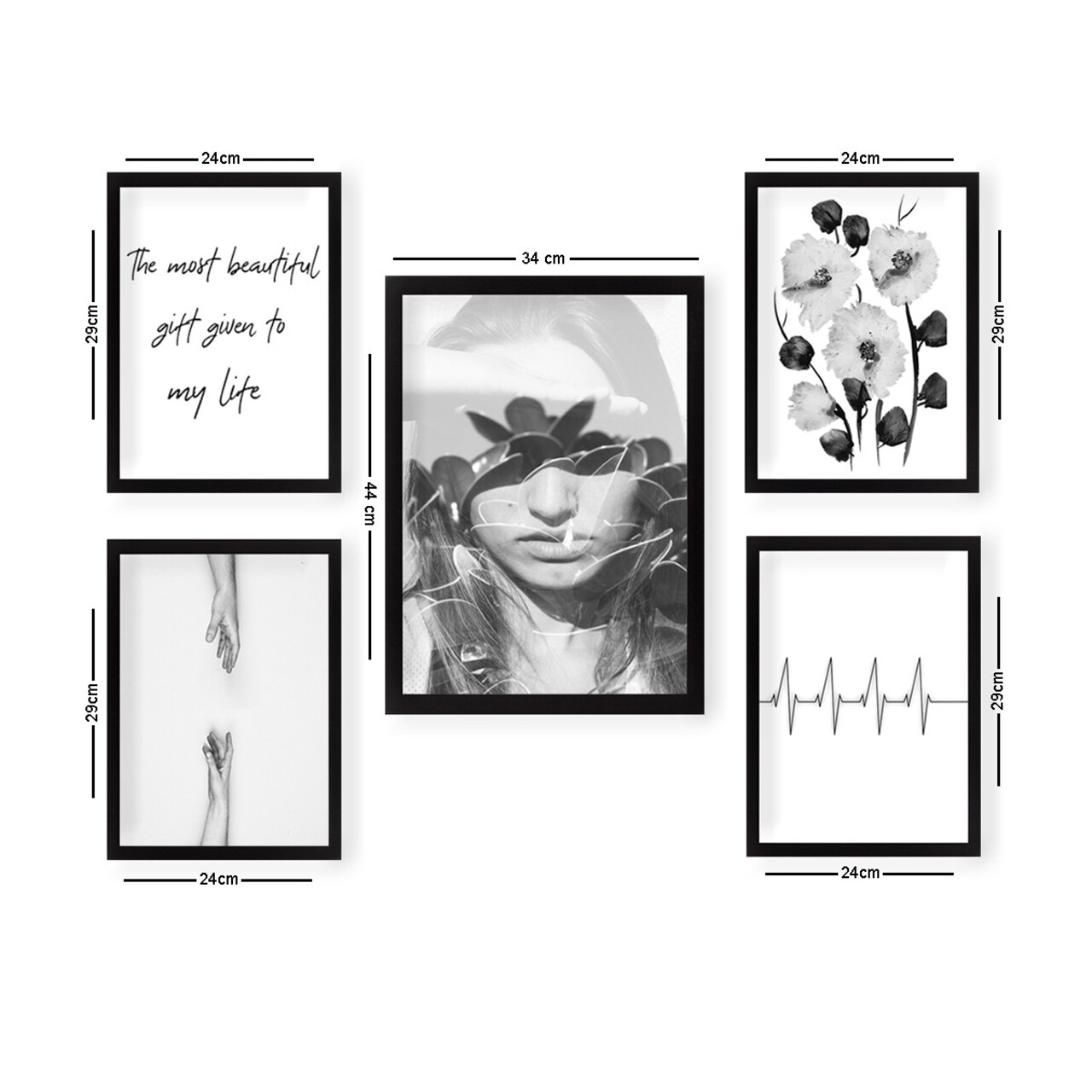 Set 5 tablouri decorative, SET_047, Lulu, 24x29 cm/34x44 cm, plastic