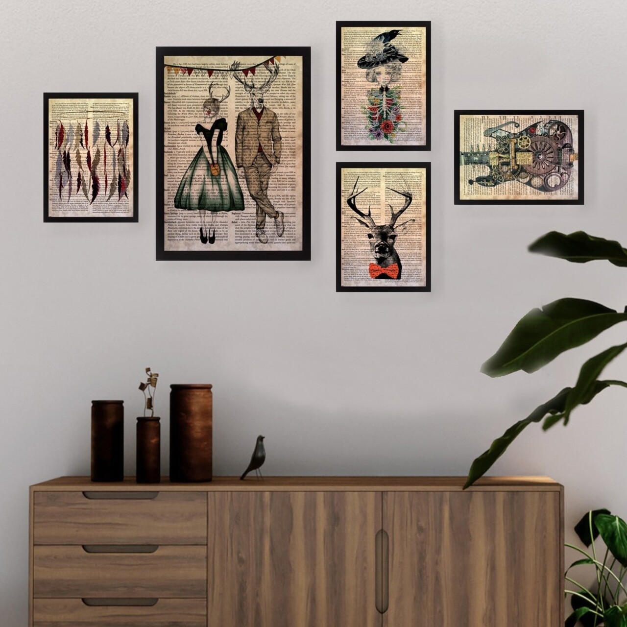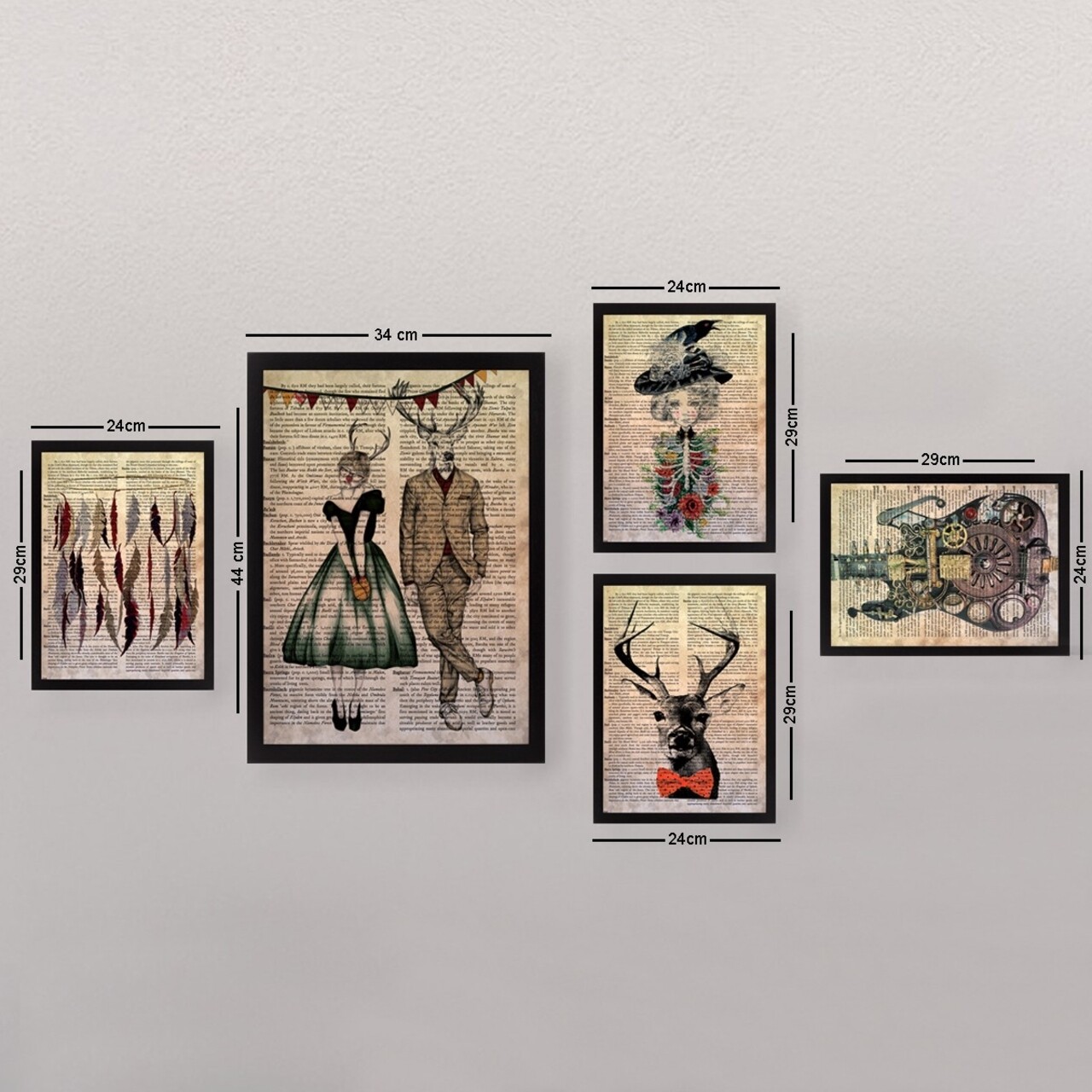 Set 5 tablouri decorative, SET_078, Lulu, 24x29 cm/34x44 cm, plastic