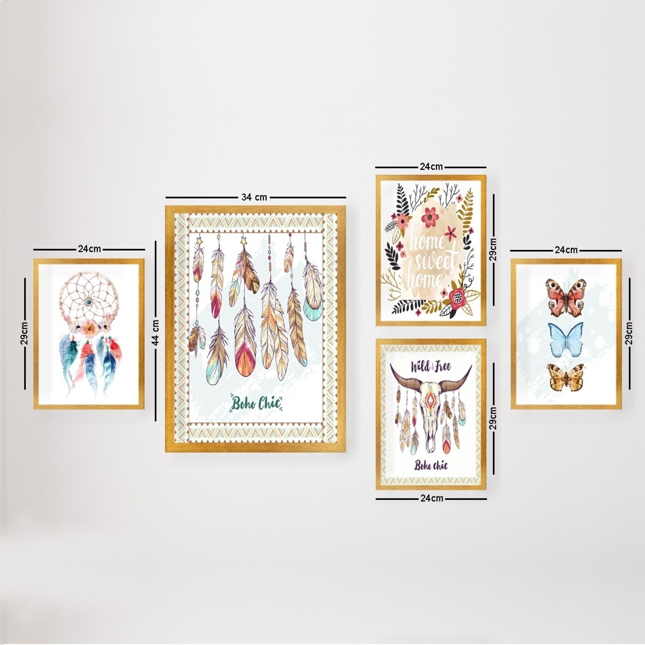 Set 5 tablouri decorative, SET_115, Lulu, 24x29 cm/34x44 cm, plastic