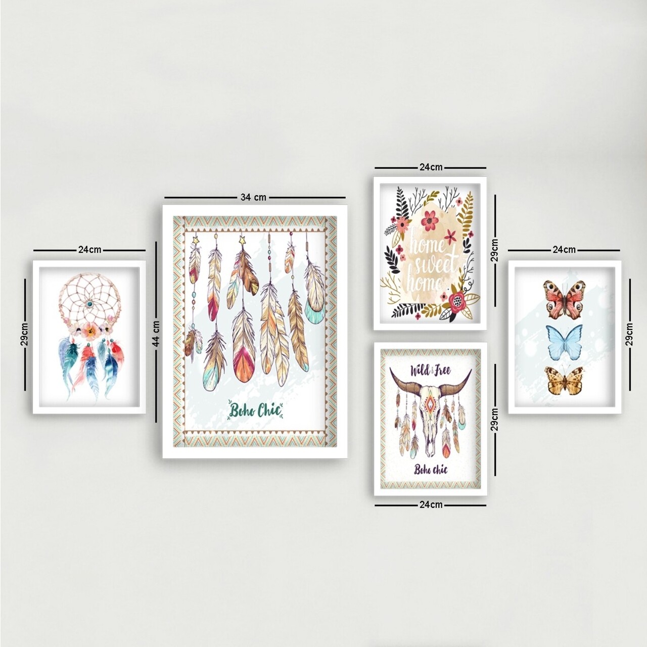 Set 5 tablouri decorative, SET_116, Lulu, 24x29 cm/34x44 cm, plastic