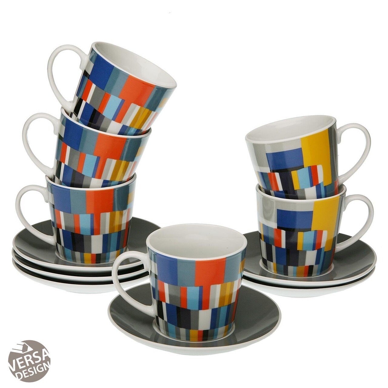 Set 6 cesti cu farfurie Etna, Versa, 10.5x8x6 cm, portelan