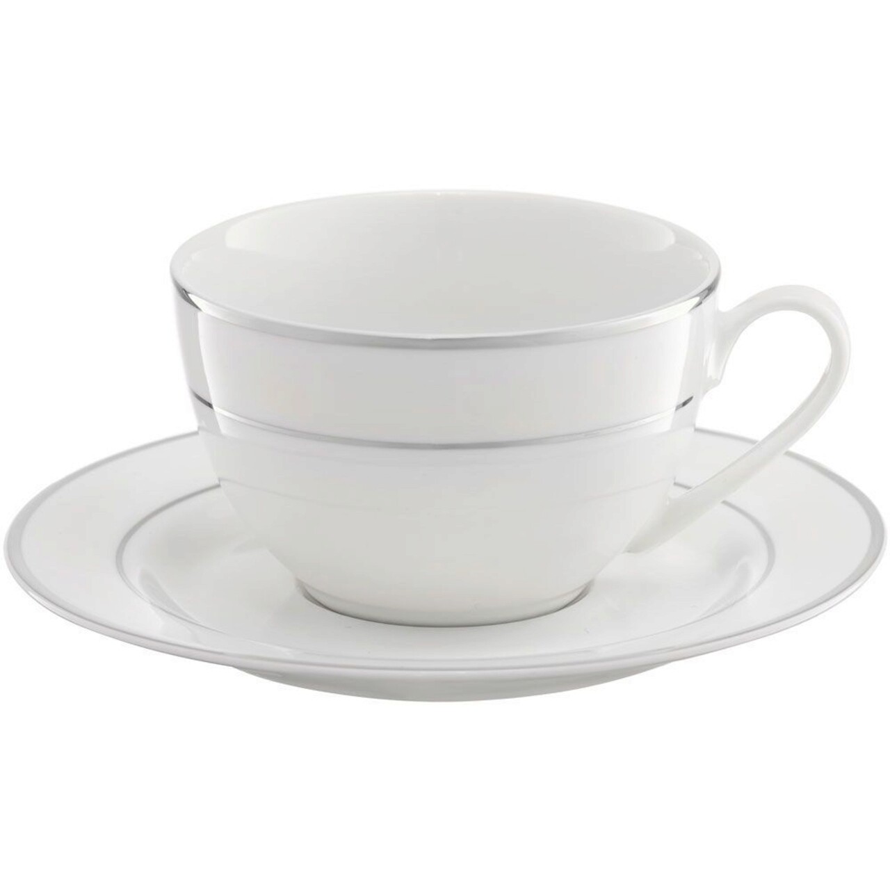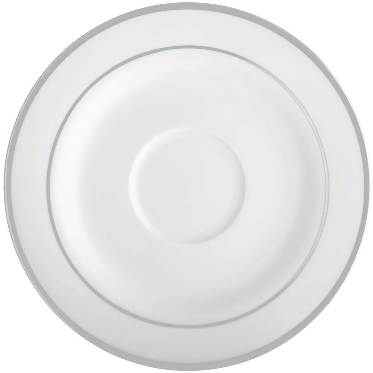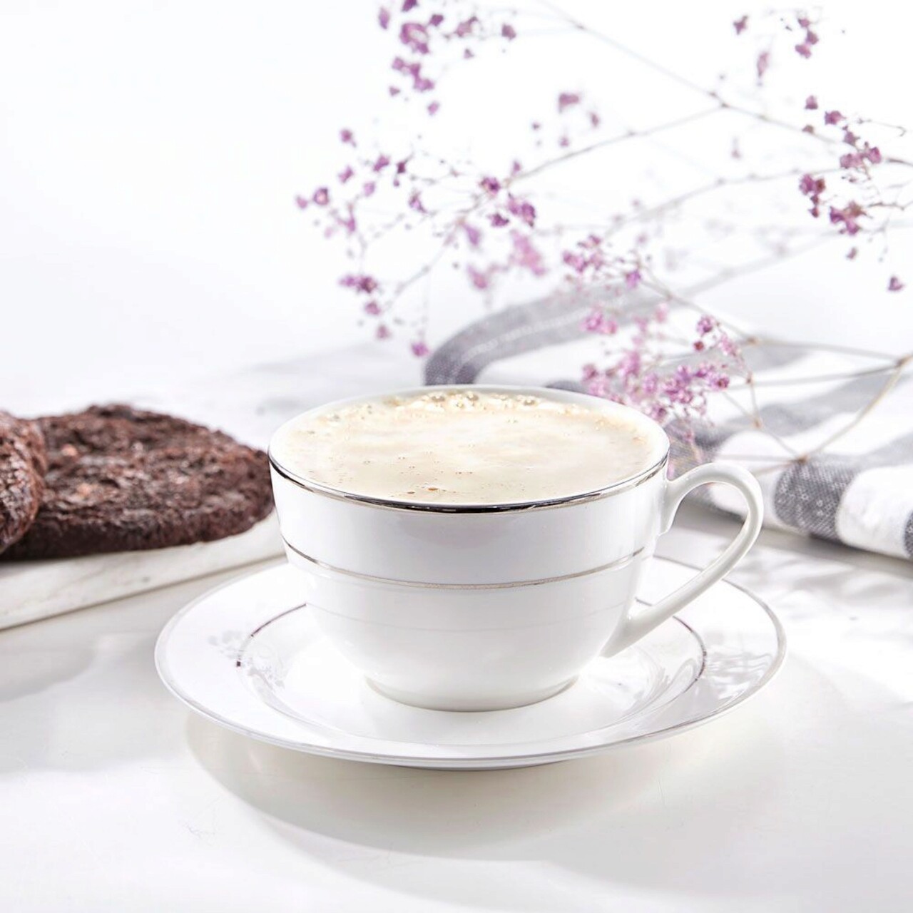 Set 6 cesti cu farfurie pentru cafea Aura Silver, Ambition, 220 ml, portelan New Bone China, alb