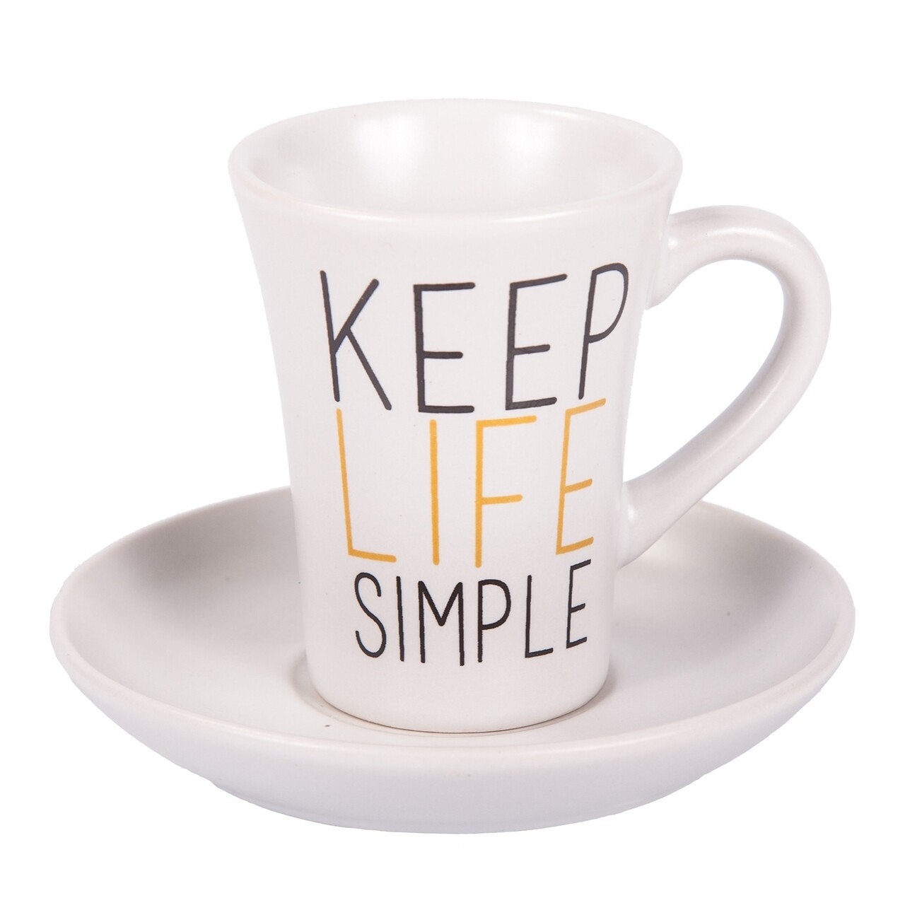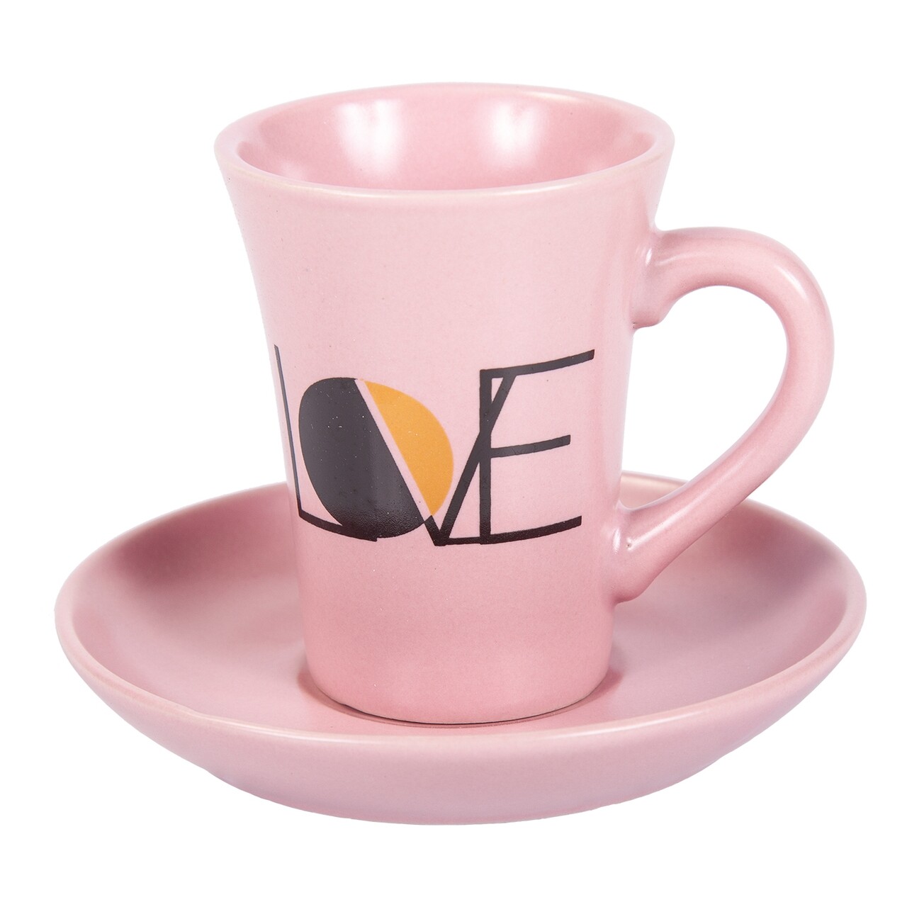 Set 6 cesti cu farfurie pentru cafea Love, Creaciones Meng, 80 ml, ceramica