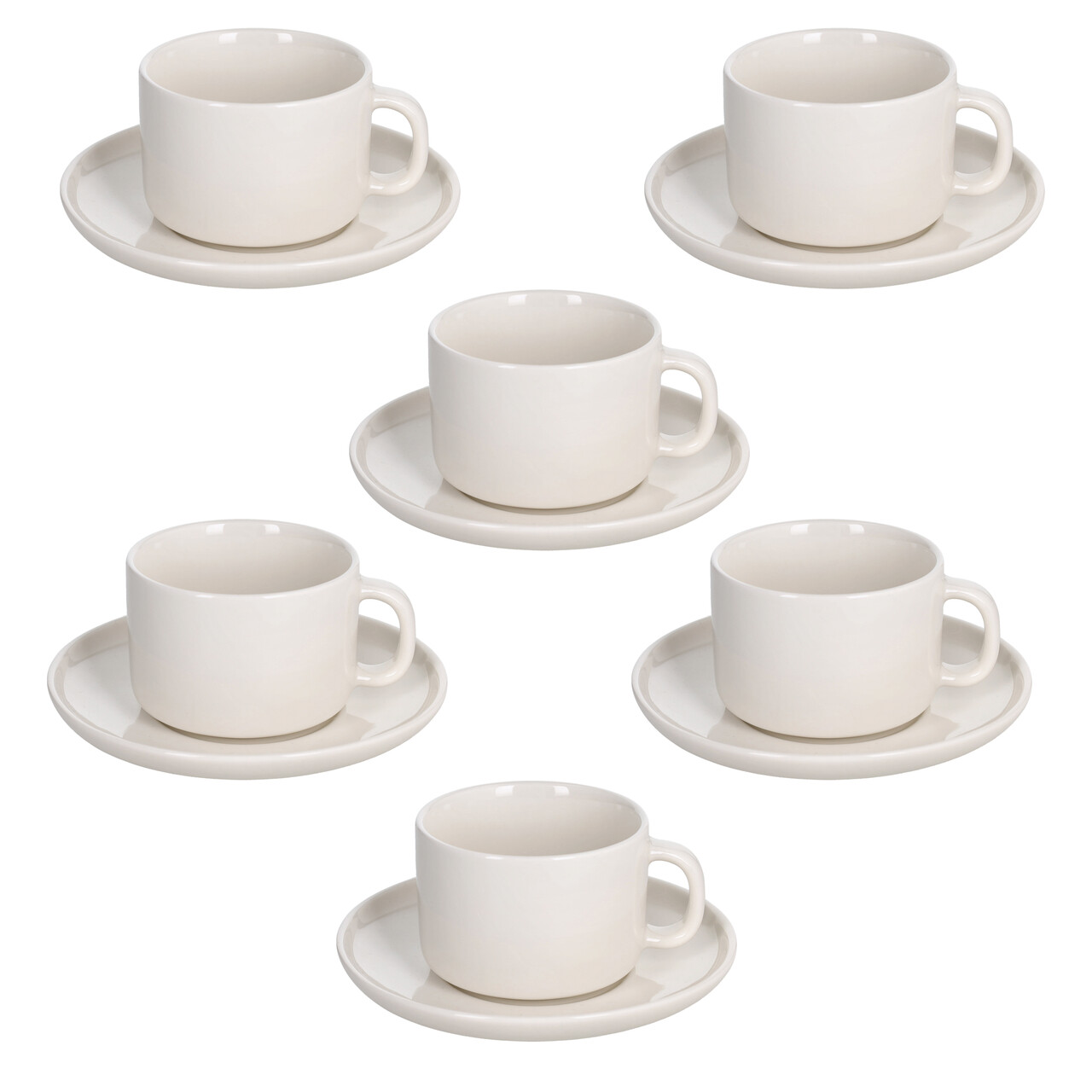 Set 6 cesti de cafea cu farfurie Edge, Tognana, 90 ml, New Bone China, bej
