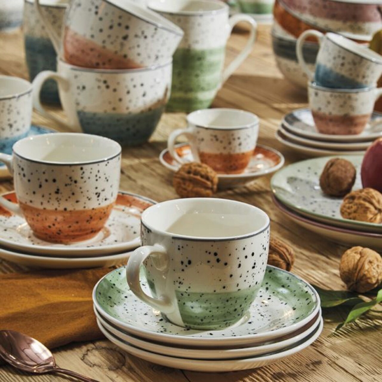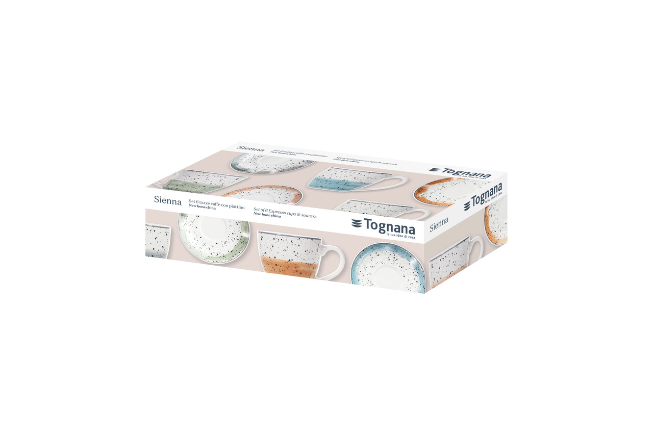 Set 6 cesti de cafea cu farfurie Iris Sienna, Tognana Porcellane, 80 ml, portelan New Bone China, multicolor