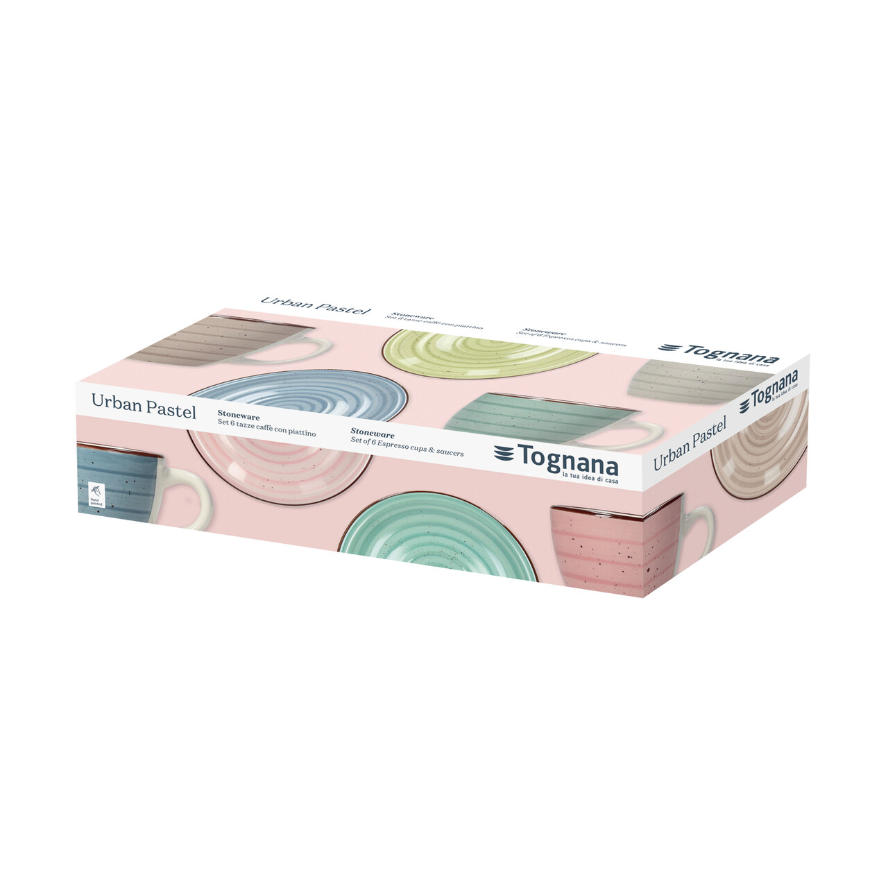 Set 6 cesti de cafea cu farfurie Louise Urban Pastel, Tognana Porcellane, 90 ml, ceramica, multicolor