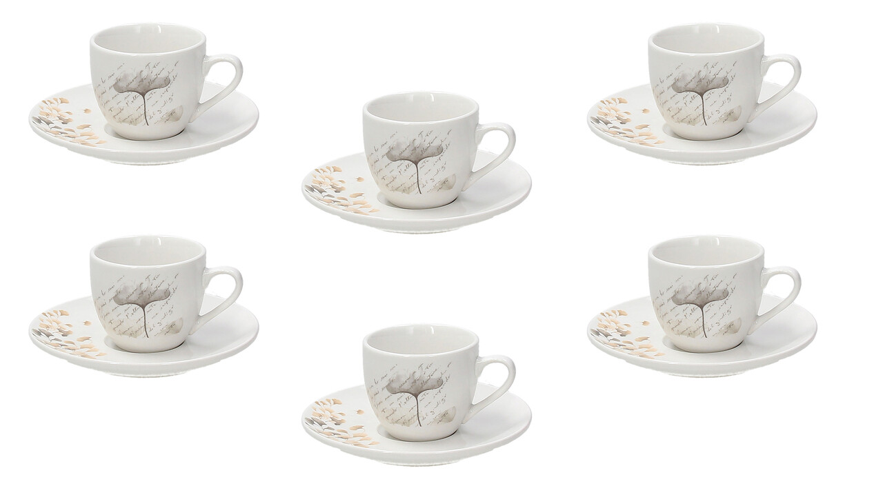 Set 6 cesti de cafea cu farfurie Madison Poesia, Tognana Porcellane, 80 ml, portelan, multicolor