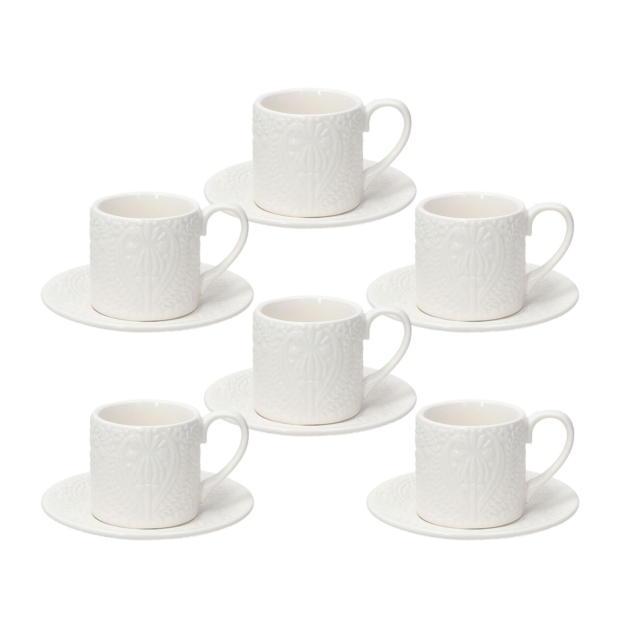 Set 6 cesti de cafea cu farfurie Ornament, Tognana Porcellane, 70 ml, portelan, alb