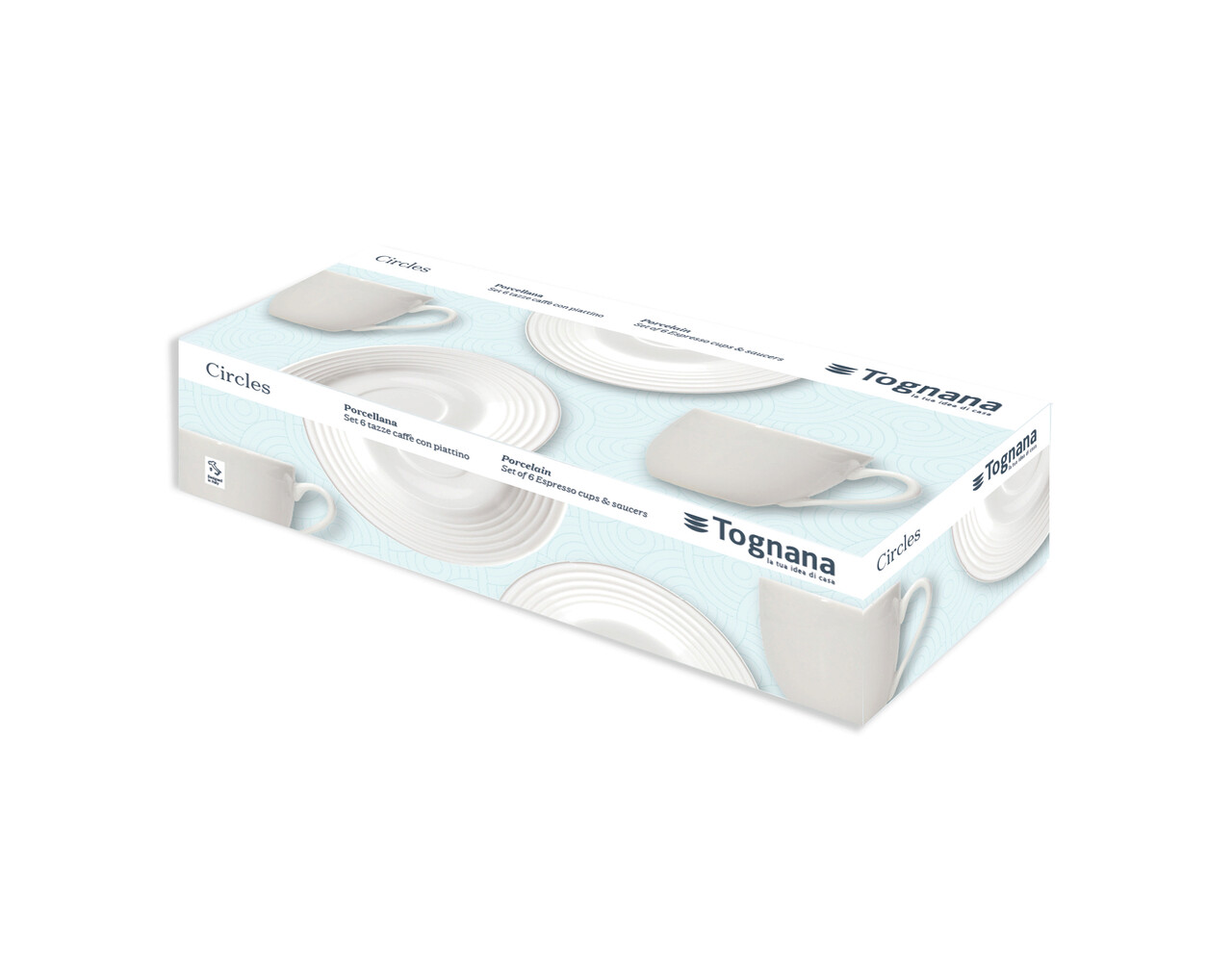 Set 6 cesti de cafea cu farfurie Polis Circles, Tognana Porcellane, 100 ml, portelan, alb