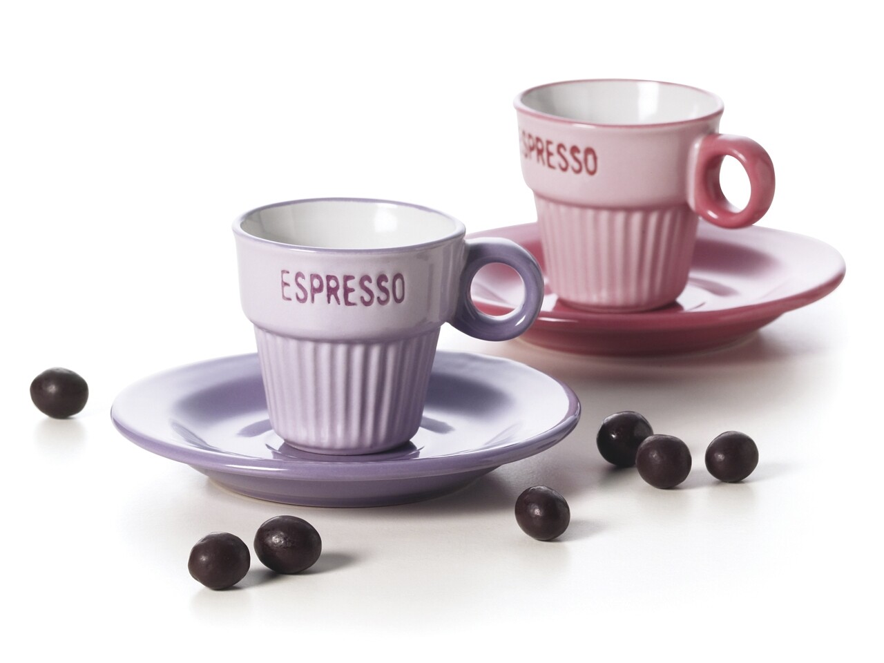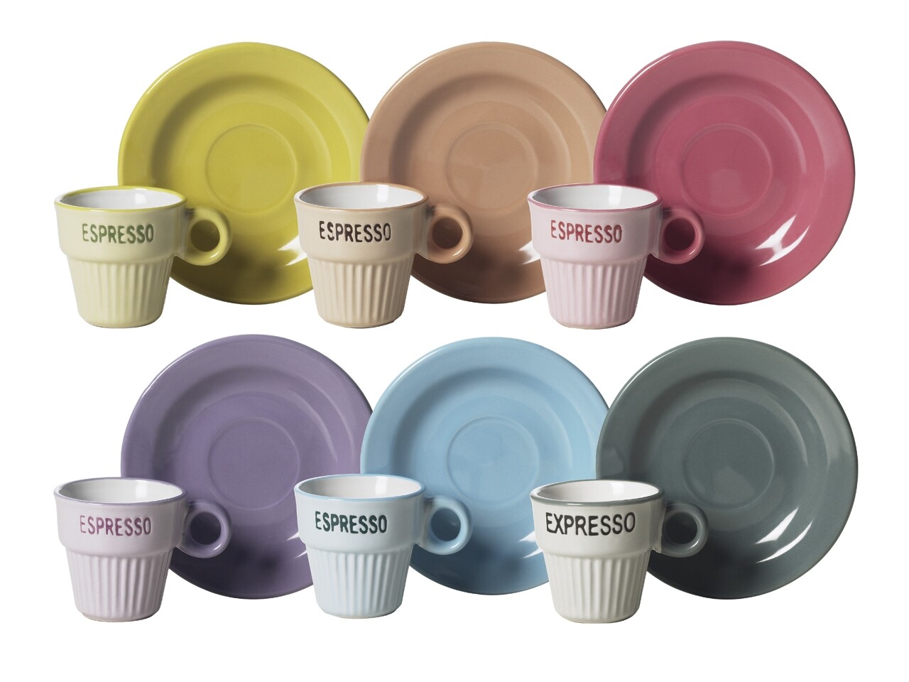 Set 6 cesti de cafea cu farfurii si lingurite, Coffee Time, Excelsa, 90 ml, ceramica, multicolor