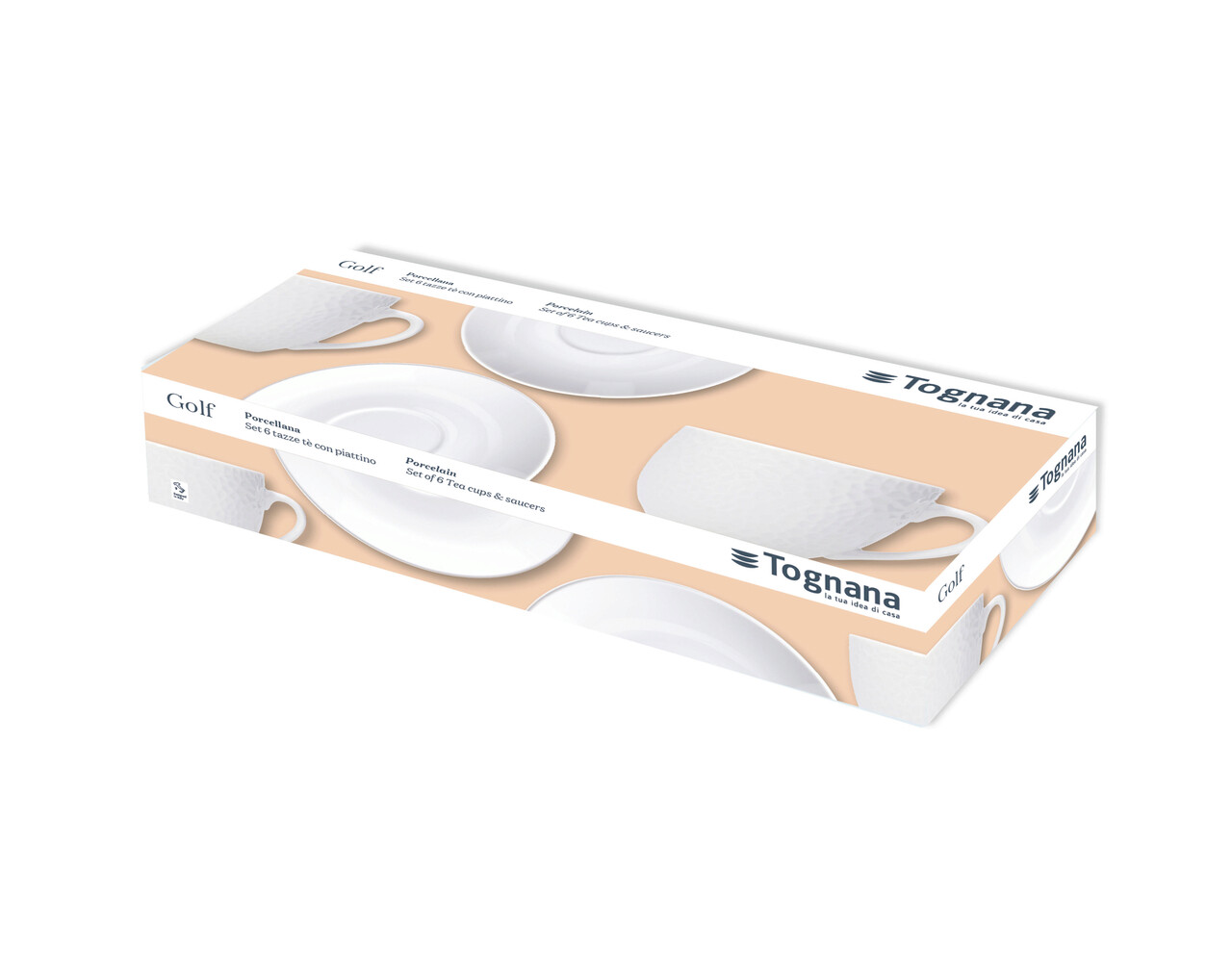 Set 6 cesti de ceai cu farfurie Golf, Tognana Porcellane, 270 ml, portelan, alb