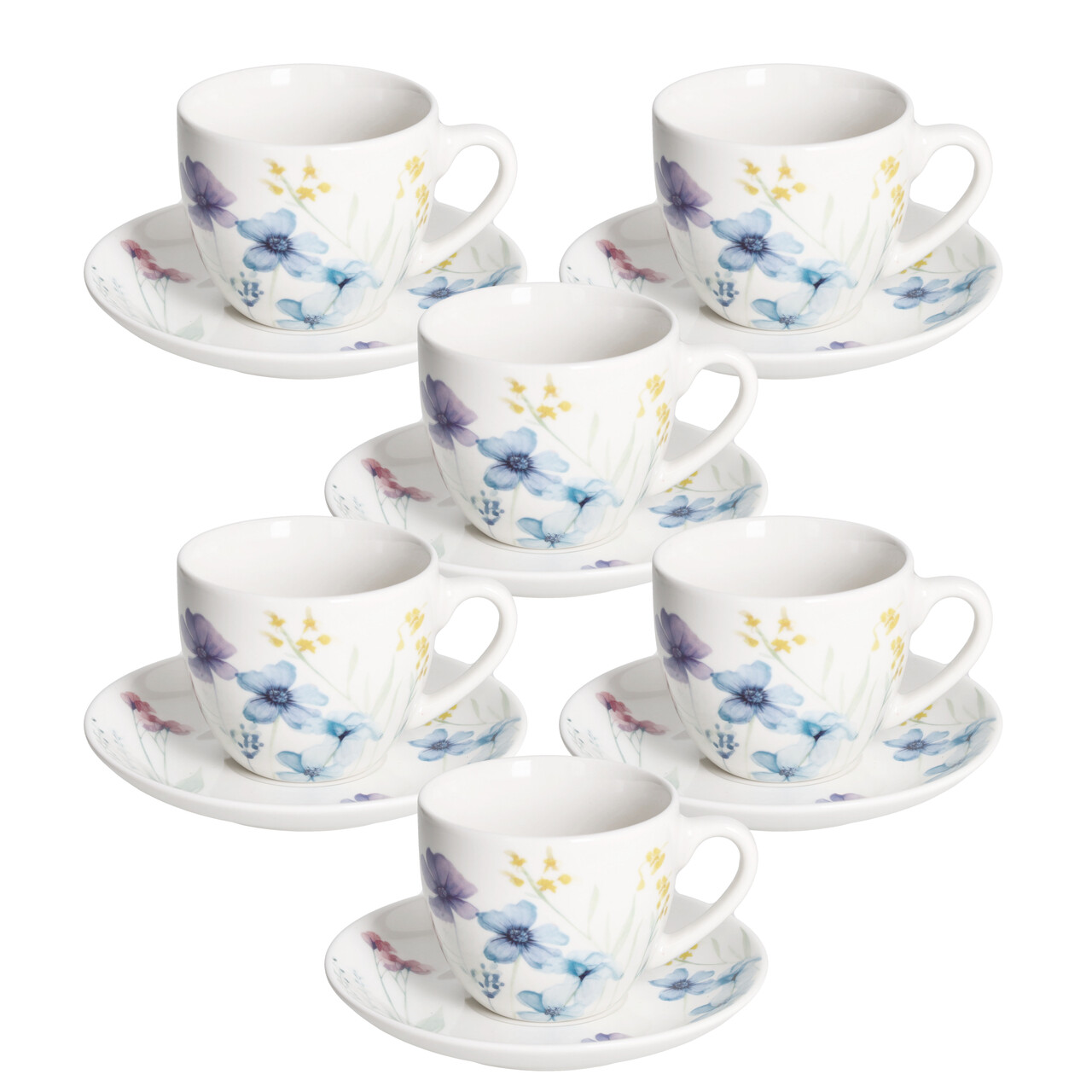Set 6 cesti de ceai cu farfurie Iris Florenne, Tognana, 200 ml, New Bone China, multicolor