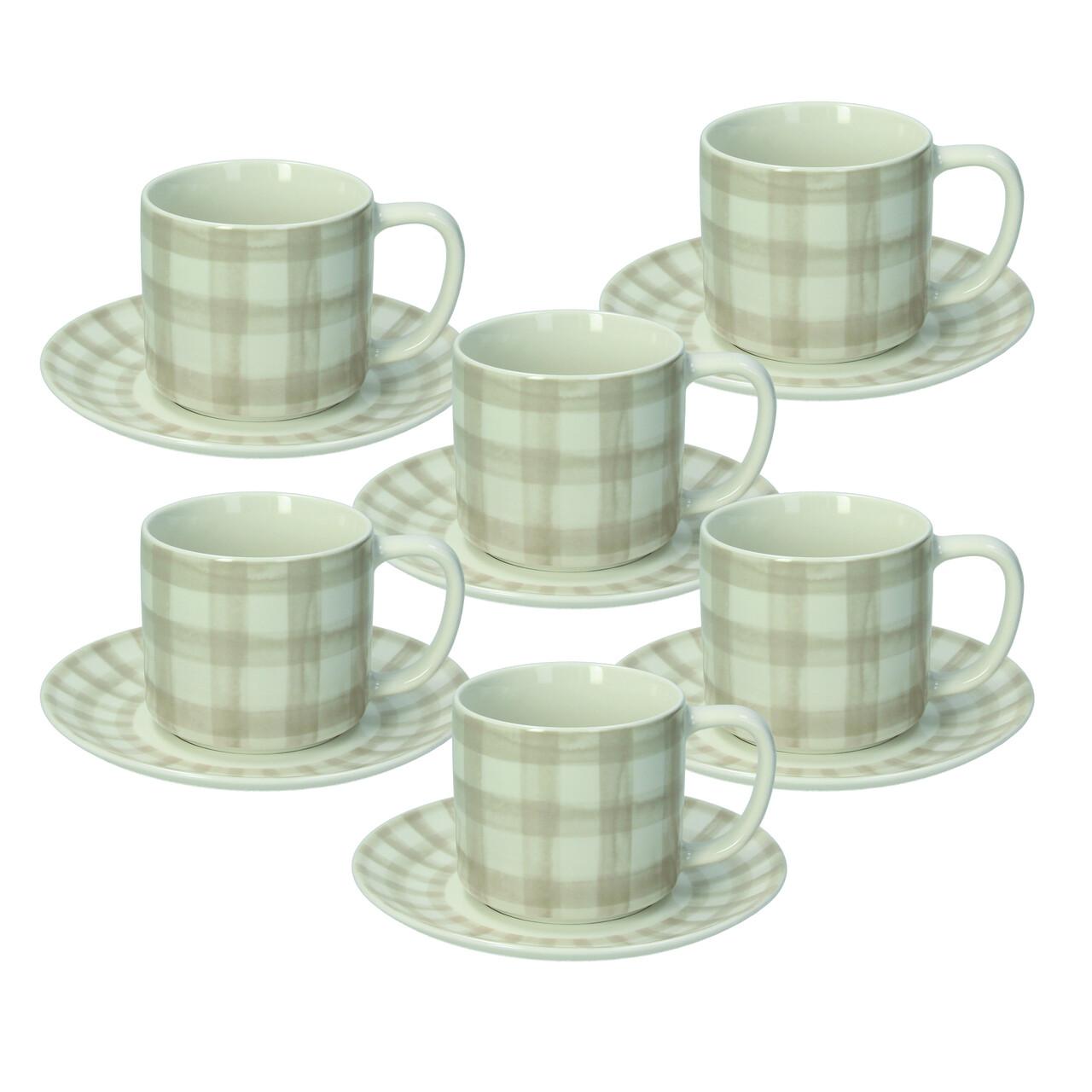Set 6 cesti de ceai cu farfurie Ivy Caledonia, Tognana, 220 ml, New Bone China, bej