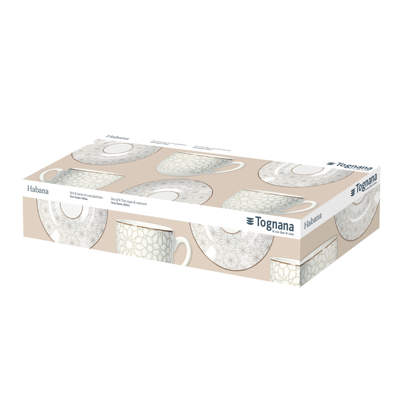 Set 6 cesti de ceai cu farfurie Madison Habana, Tognana, 250 ml, portelan, multicolor