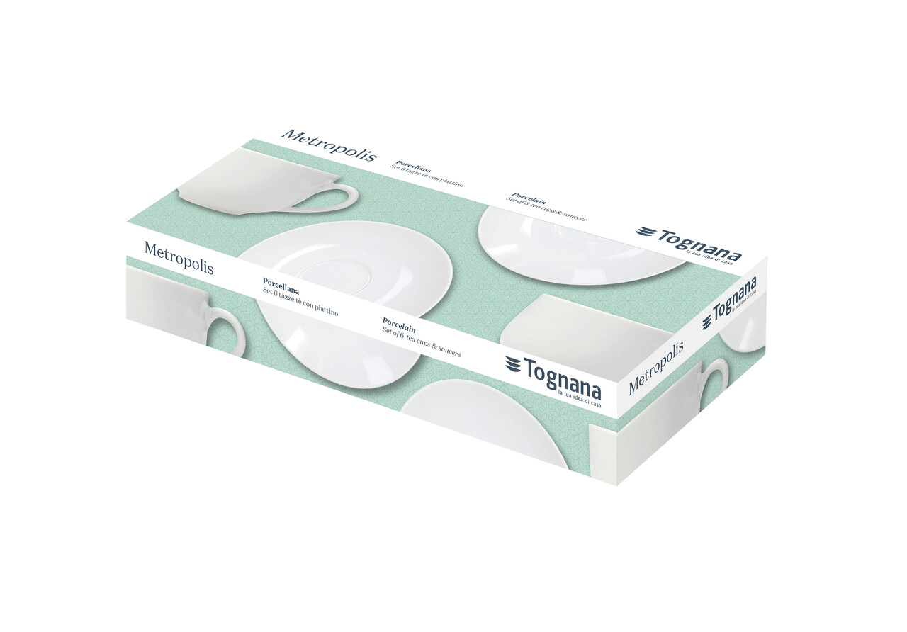 Set 6 cesti de ceai cu farfurie Metropolis, Tognana Porcellane, 260 ml, portelan, alb