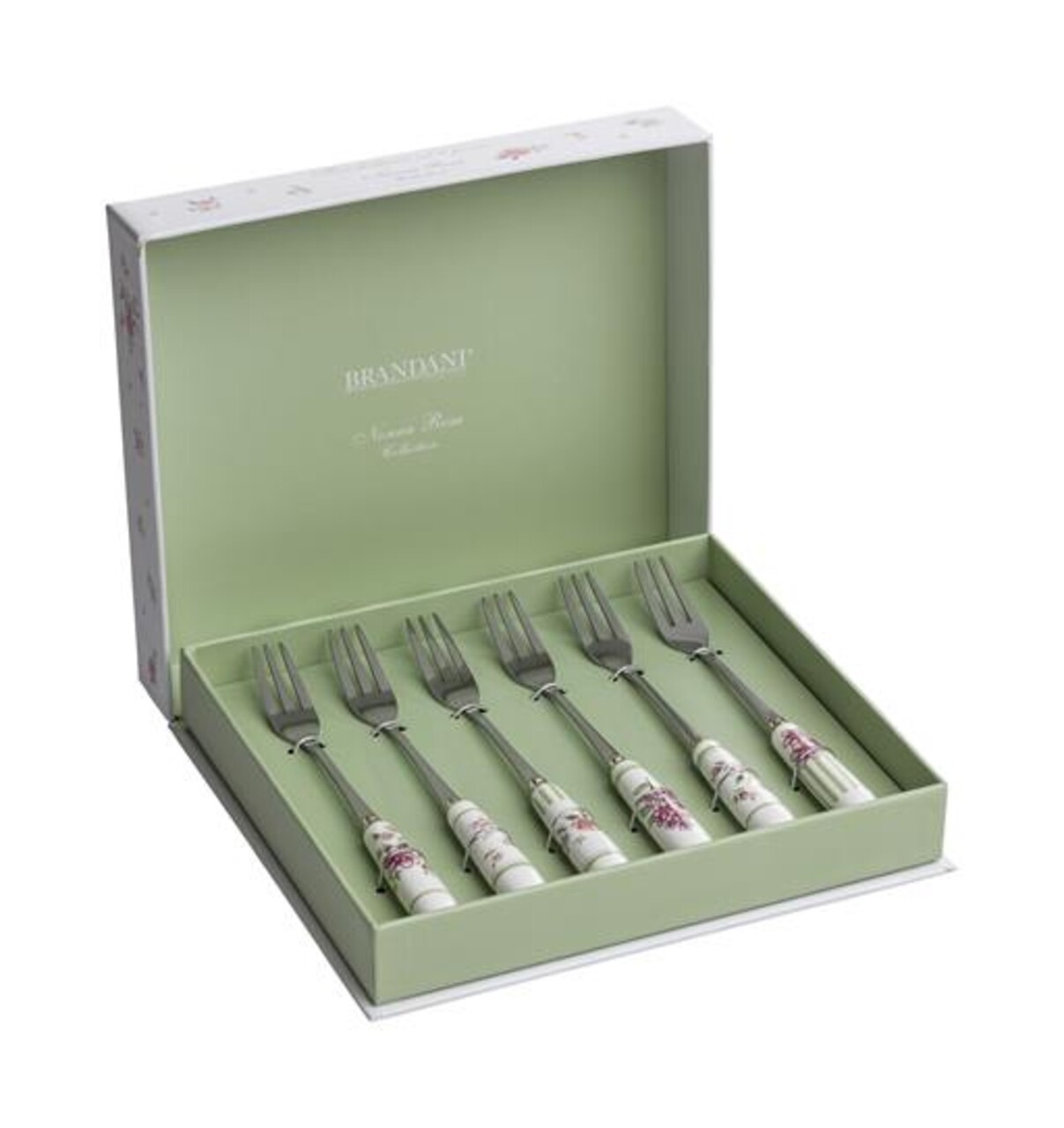 Set 6 furculite Nonna Rosa, Brandani, 17 cm, inox/ceramica