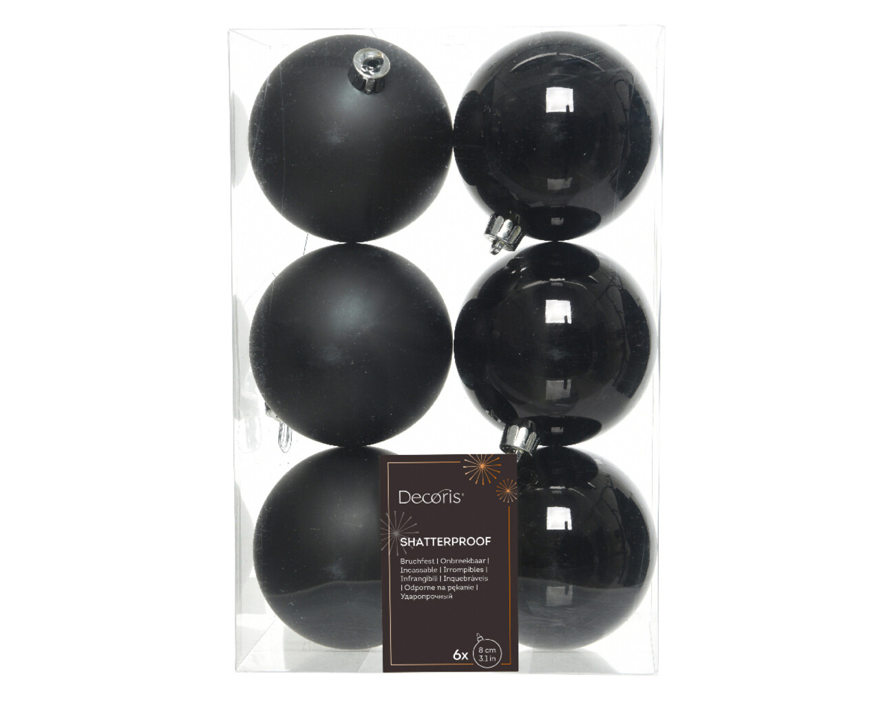 Set 6 globuri Baubles, Decoris, 8 cm, plastic, negru