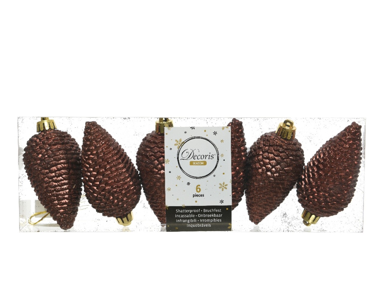 Set 6 globuri Pinecone Rosewood, Decoris, plastic, maro