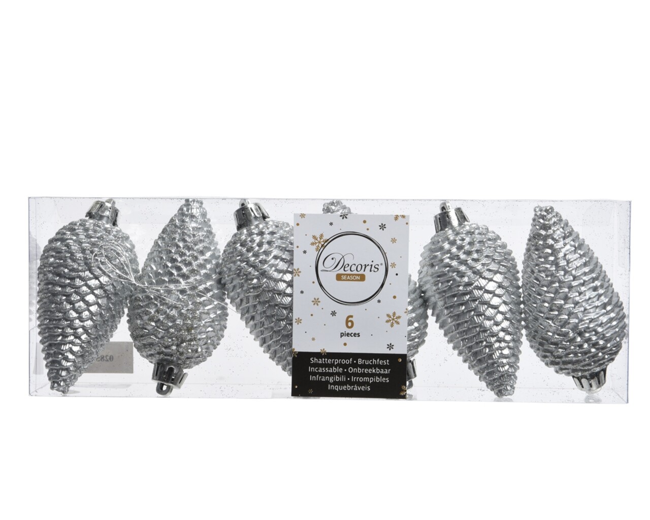 Set 6 globuri Pinecone Silver, Decoris, plastic, argintiu