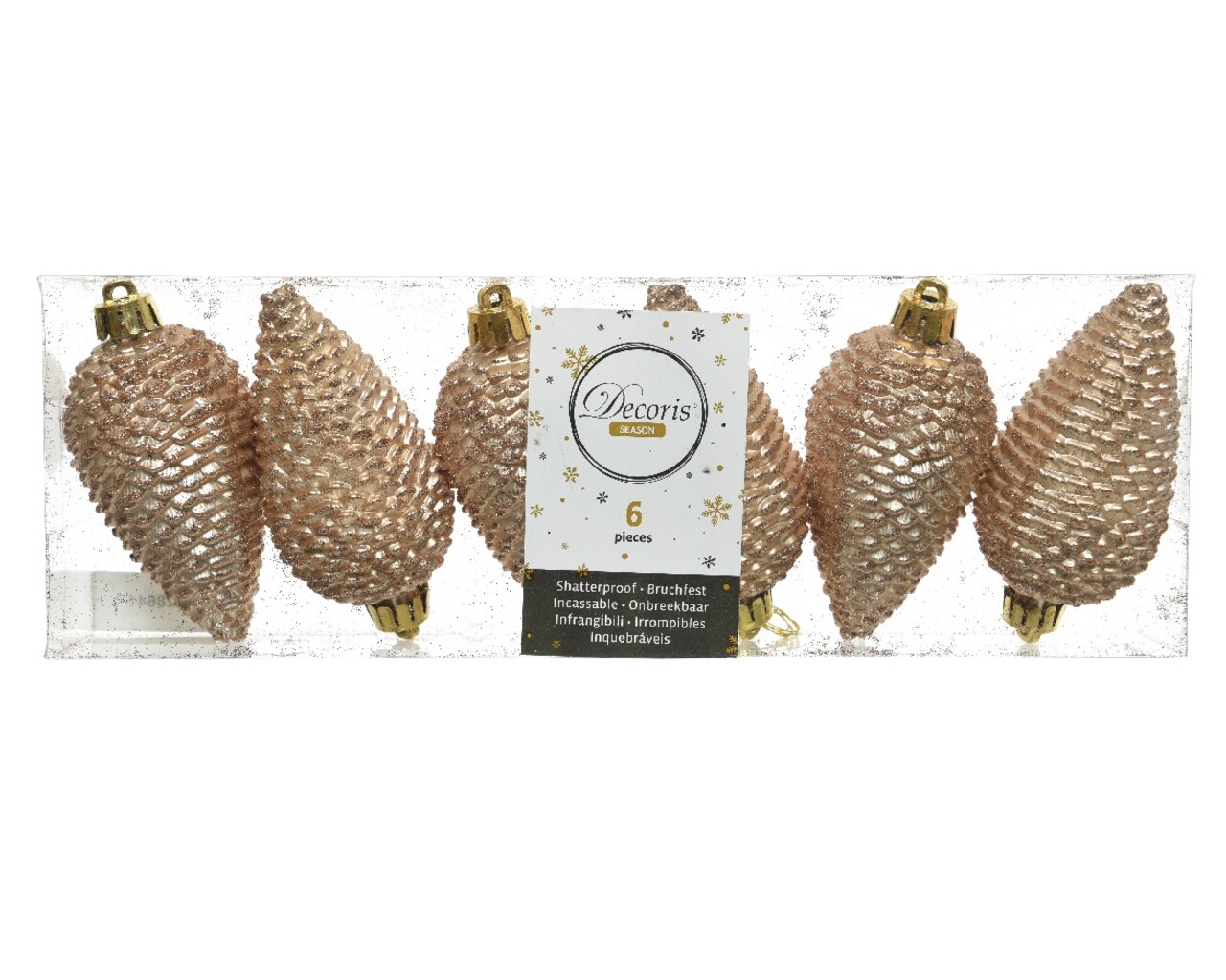 Set 6 globuri Pinecone Warm Beige, Decoris, plastic, bej
