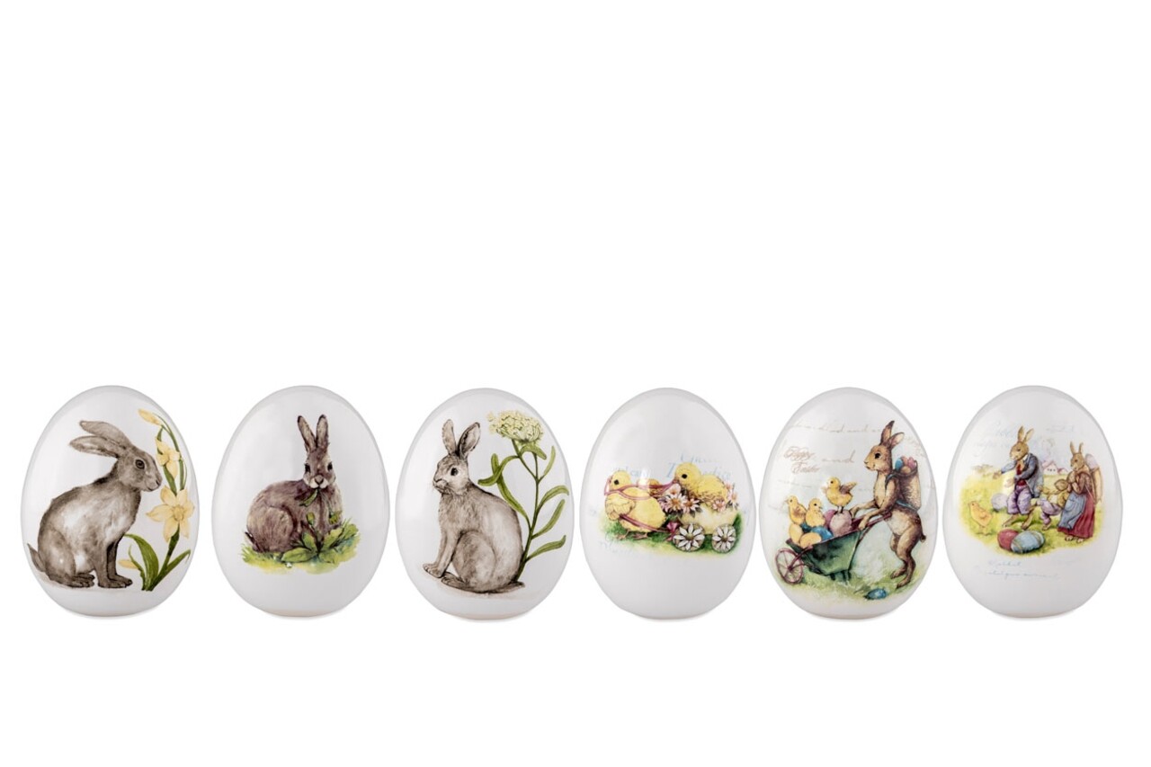 Set 6 oua decorative Rabbit, Hermann Bauer, portelan, multicolor