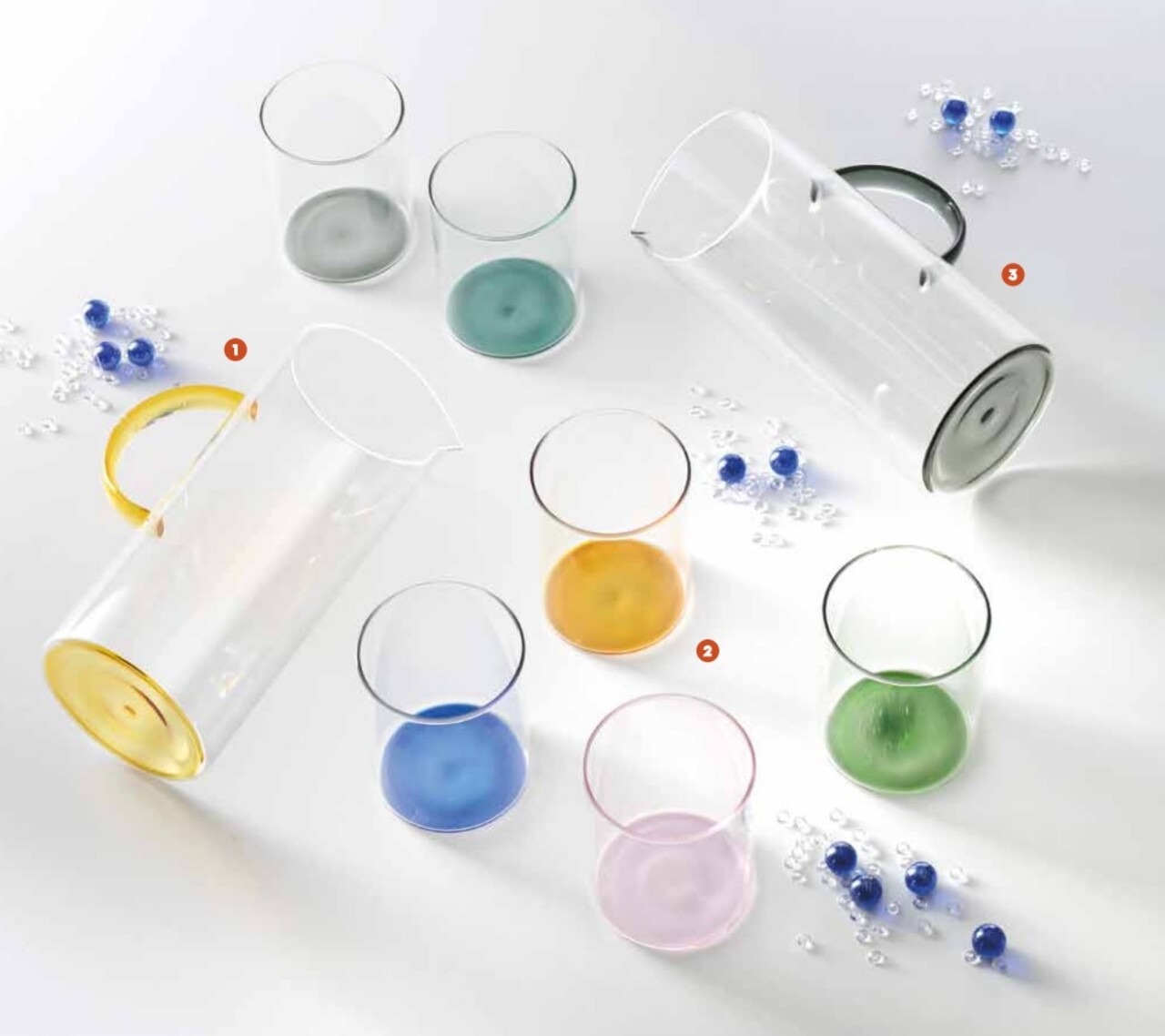 Paharele Bottom semnate Brandani, realizate din sticla transparenta cu baza colorata, sunt create pentru a aduce lumina si personalitate mesei tale, fara a renunta la eleganta.